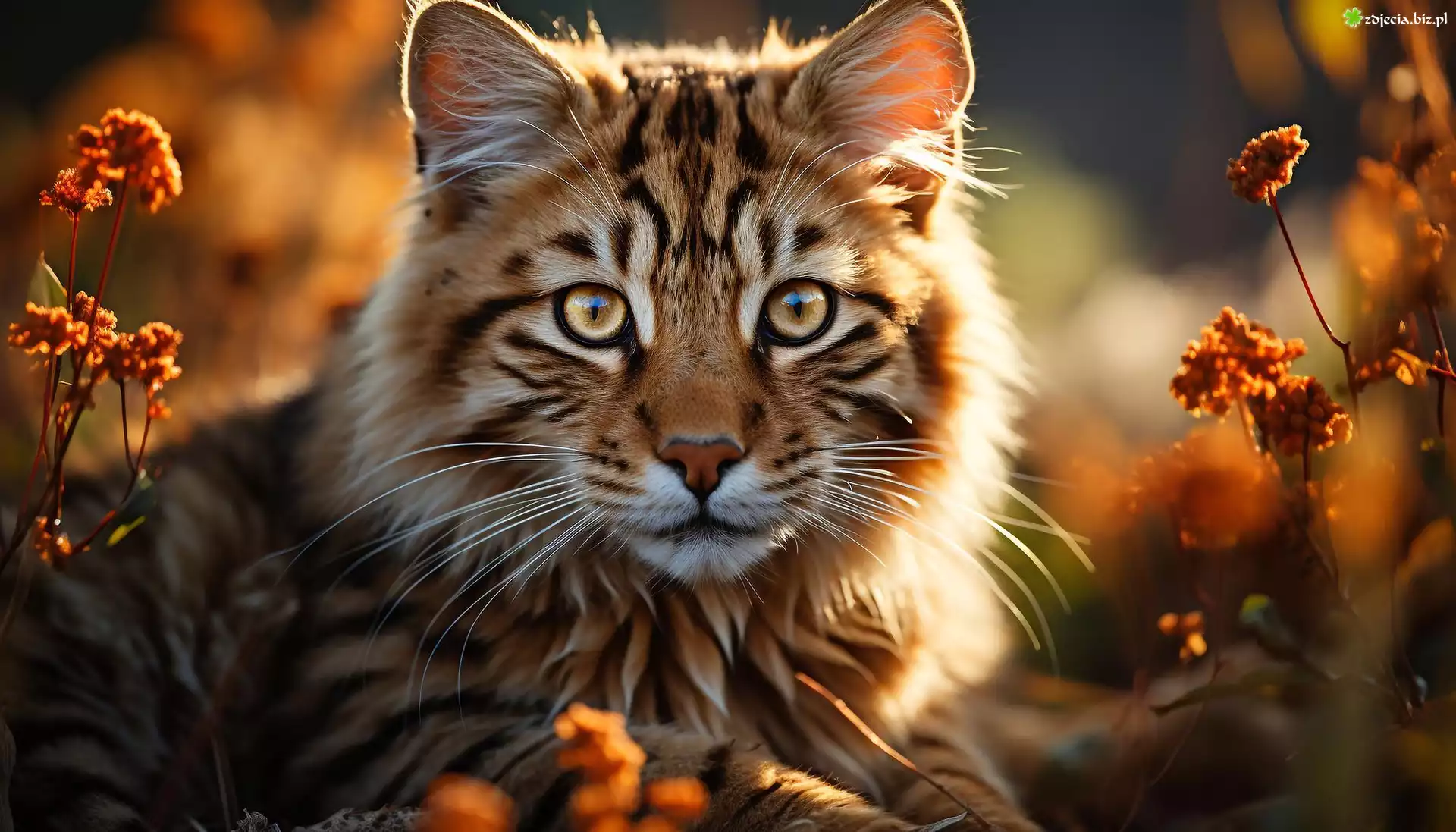 Zdjęcie Kot, Spojrzenie, Rośliny