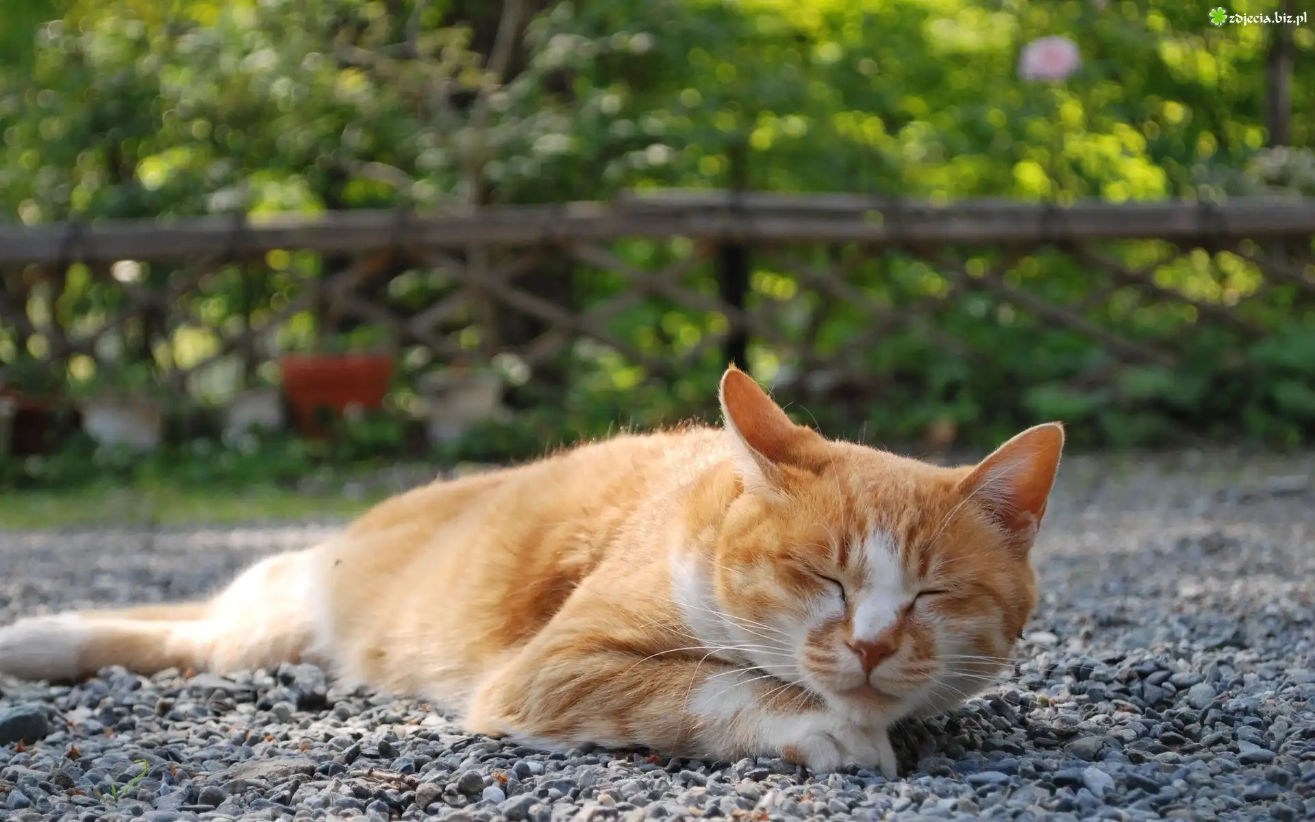 Zdjęcie Śpiący, Rudy, Kot, Kamyczki