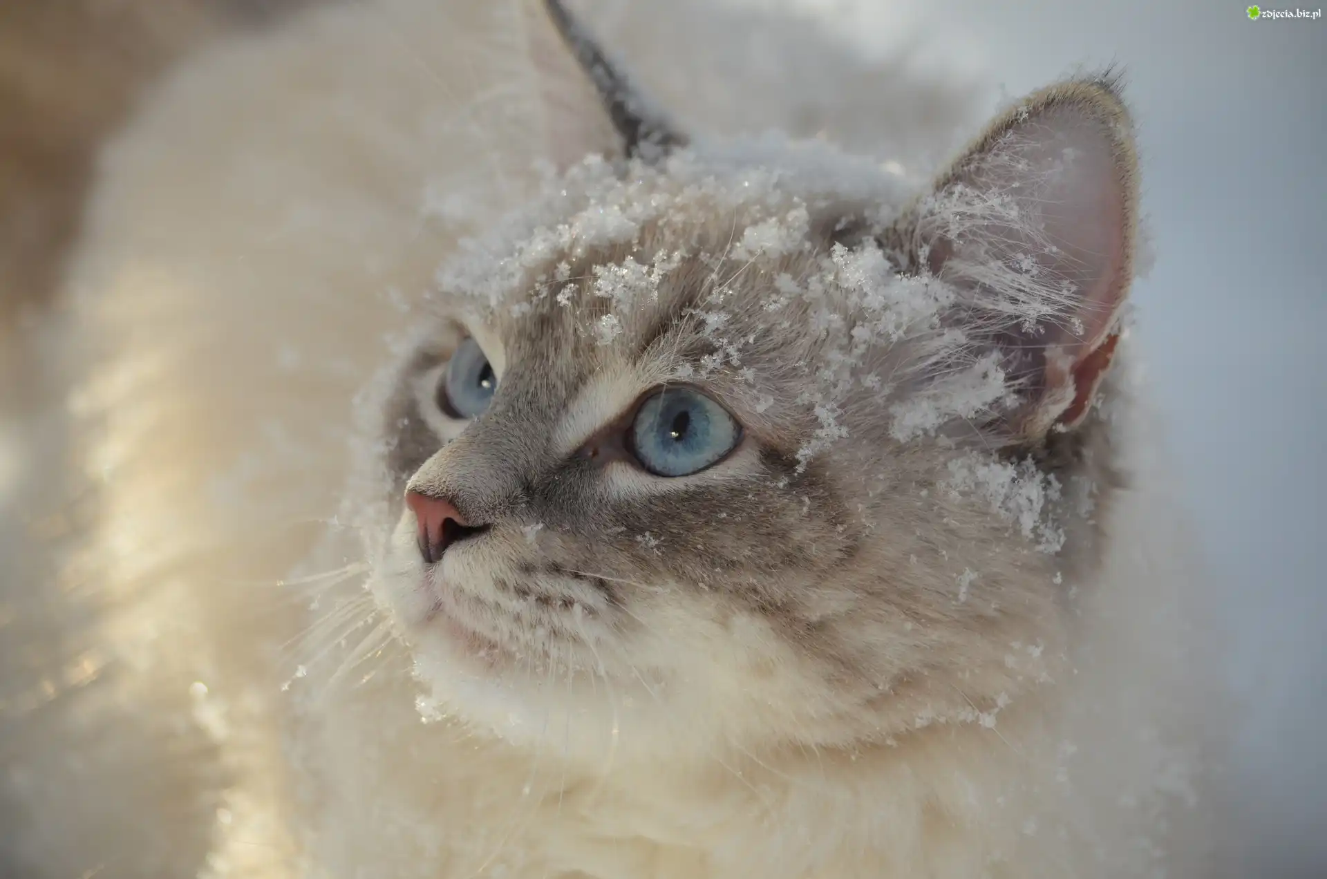 Zdjęcie Kot, Błękitne, Oczy, Spojrzenie, Śnieg