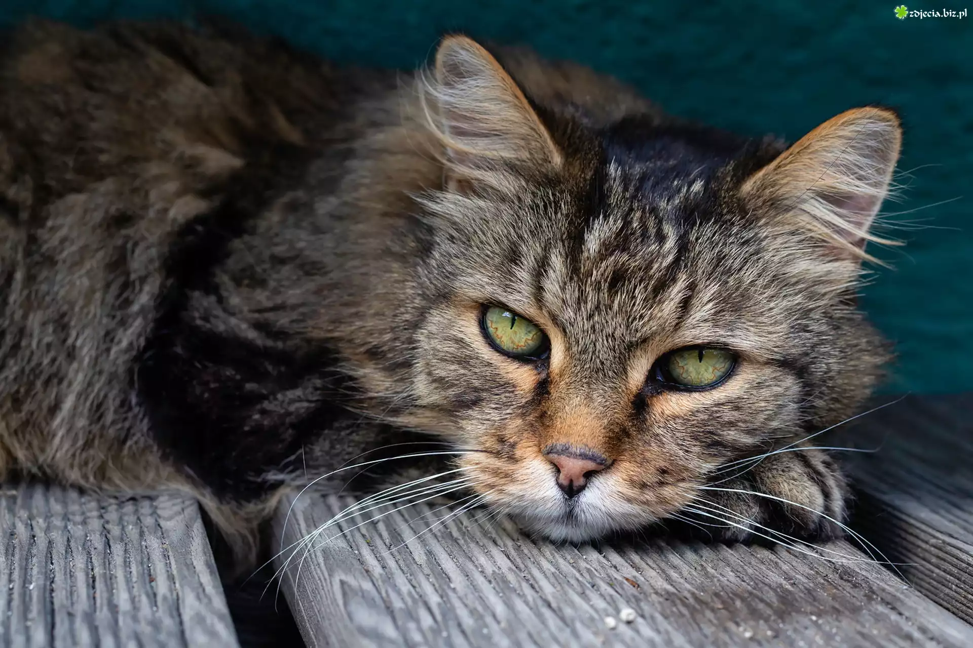 Zdjęcie Kot, Zbliżenie, Spojrzenie, Deski
