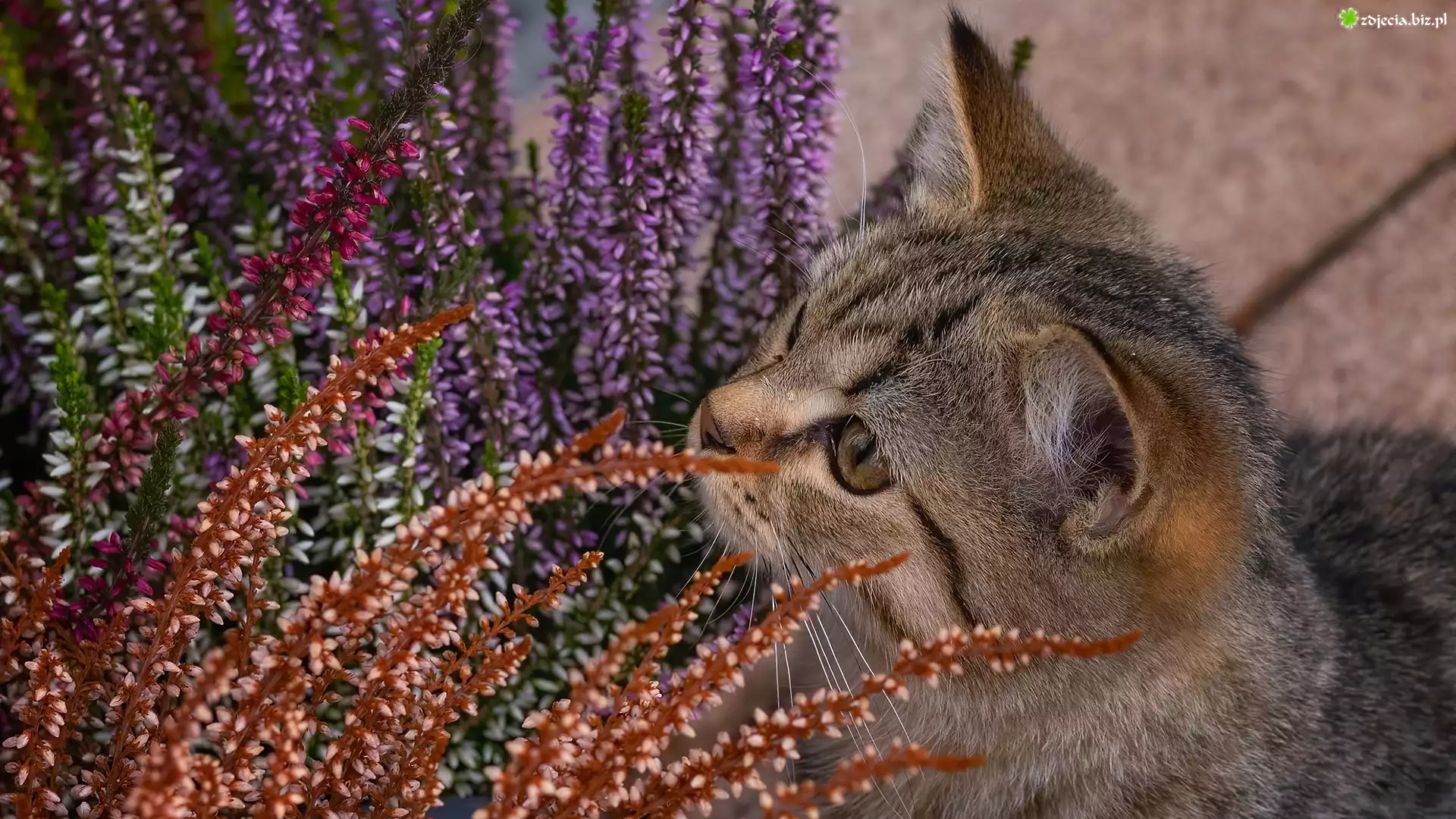 Zdjęcie Zapatrzony, Kot, Wrzos