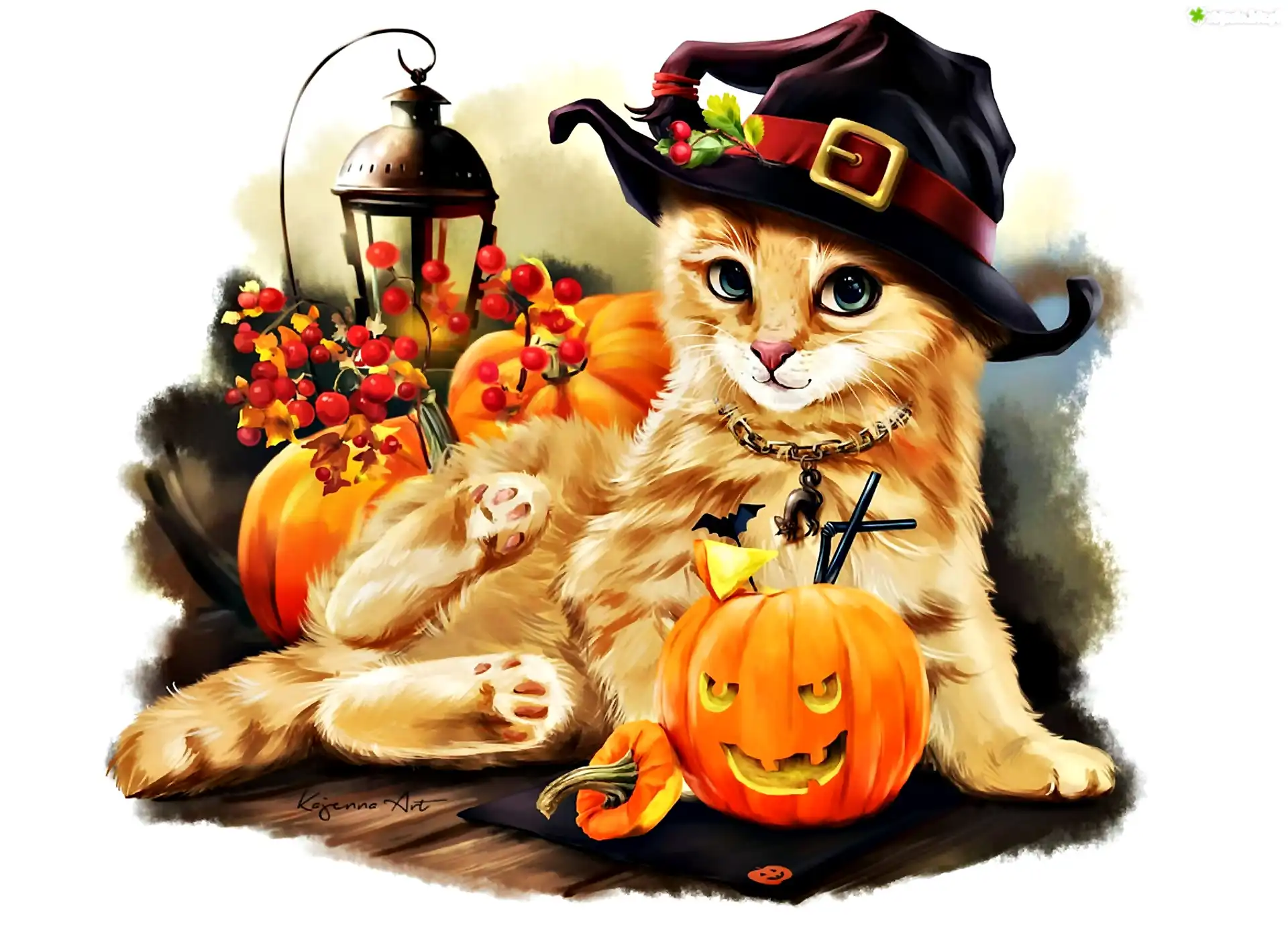 Zdjęcie Kotek, Jesień, Halloween, Grafika