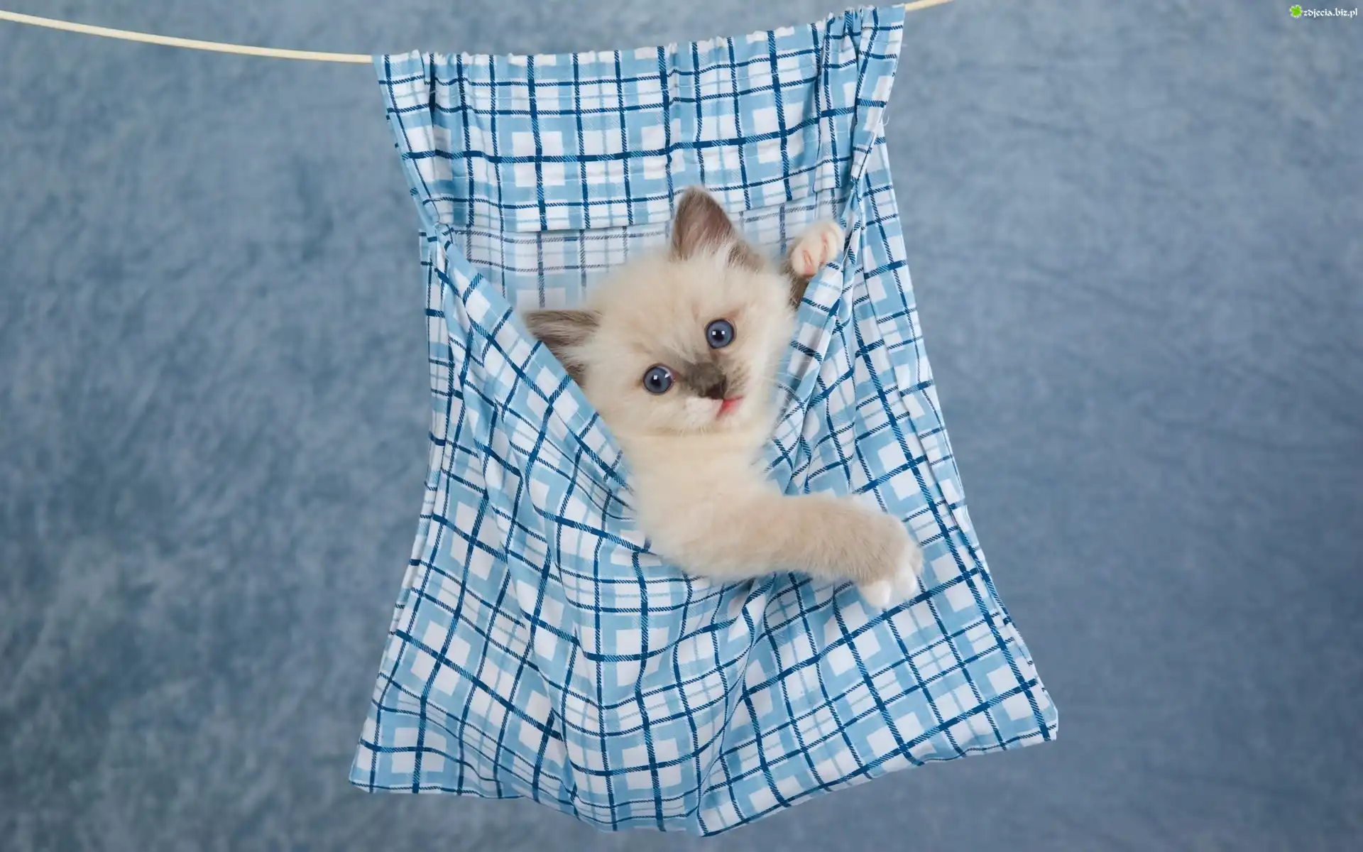 Zdjęcie, Kotek, Syjamski, Kieszeń, Sznurek