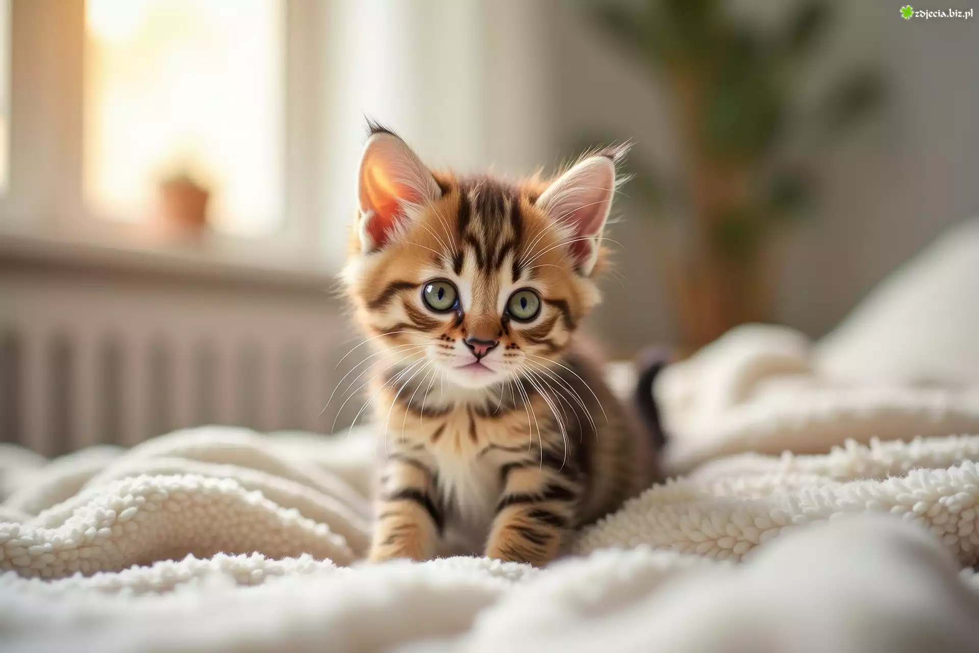 Zdjęcie Mały, Kotek, Kot, Koc, Grafika
