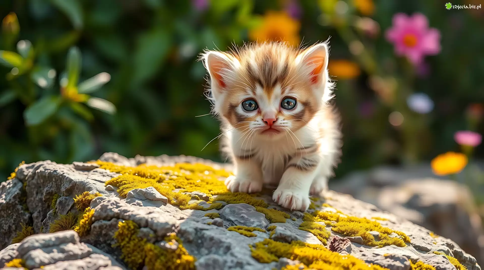 Zdjęcie Kot, Kotek, Skała, Grafika AI