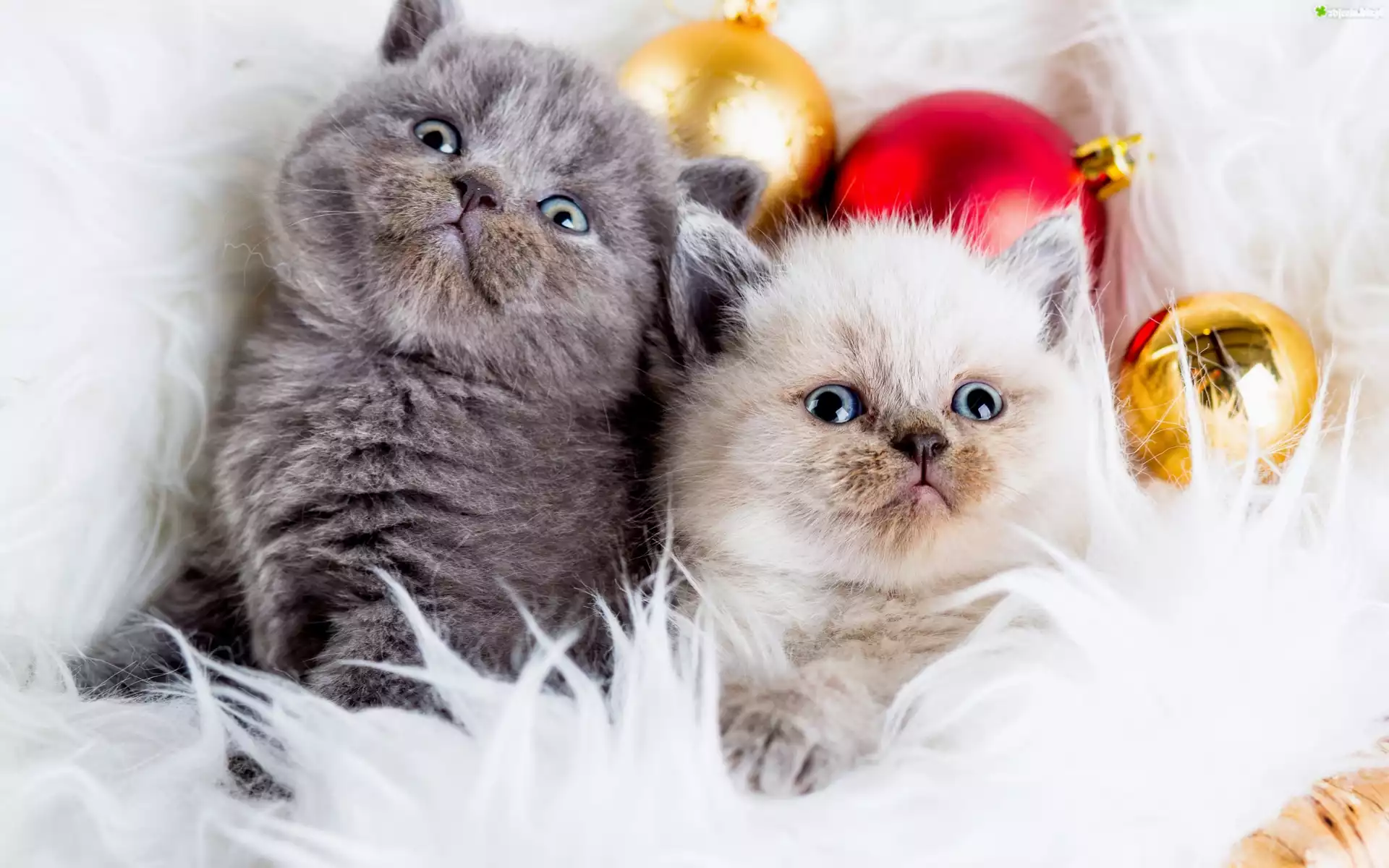 Zdjęcie, Kotki, Koty, Świąteczne, Bombki