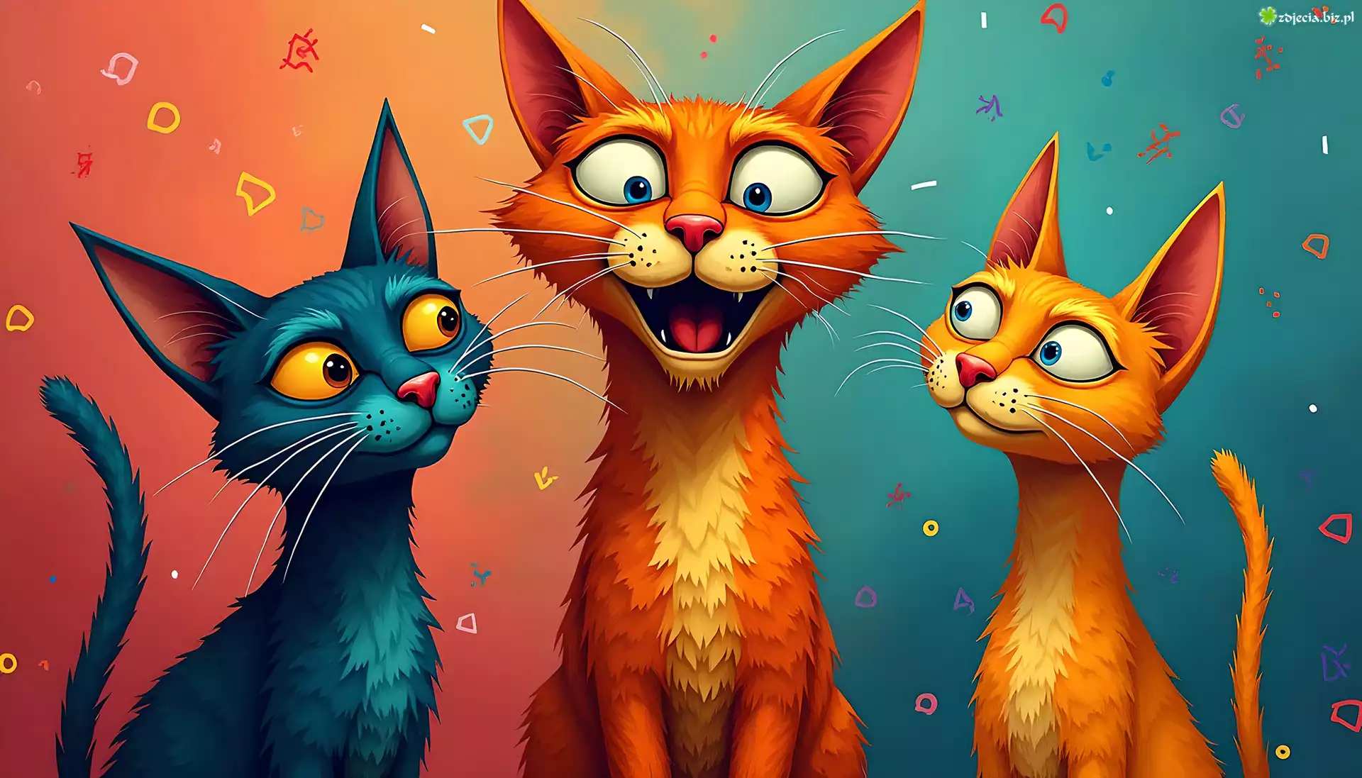 Zdjęcie Trzy, Koty, Kolorowe, Tło, Grafika