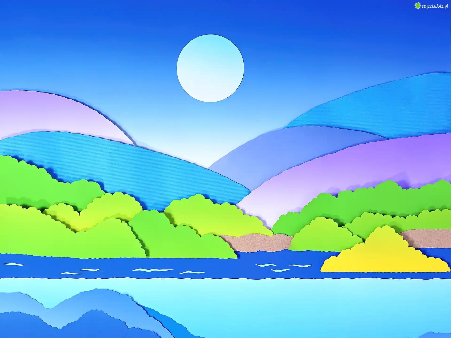Zdjęcie Krajobraz, Rzeka, Drzewa, Góry, Art