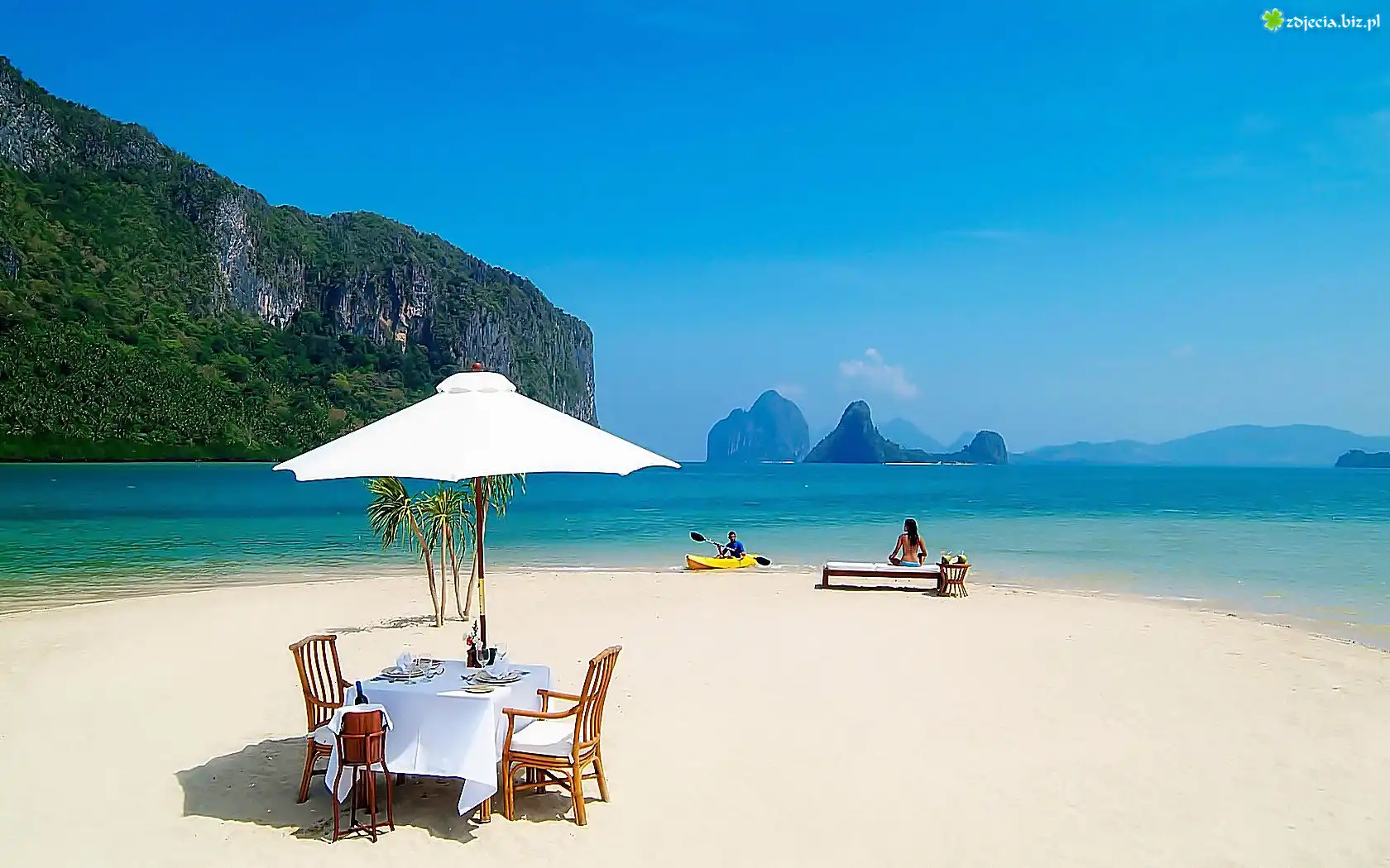 Zdjęcie Morze, Góry, Lato, Plaża, Parasol, Wakacje