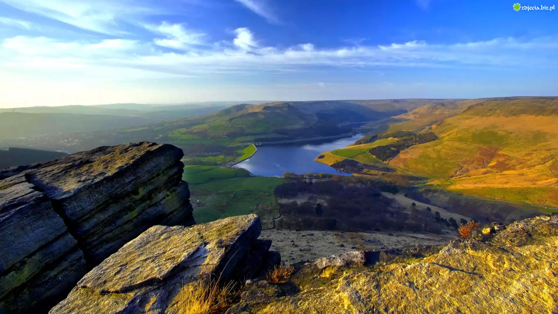 Zdjęcie Krajobraz, Skały, Wzgórza, Jezioro