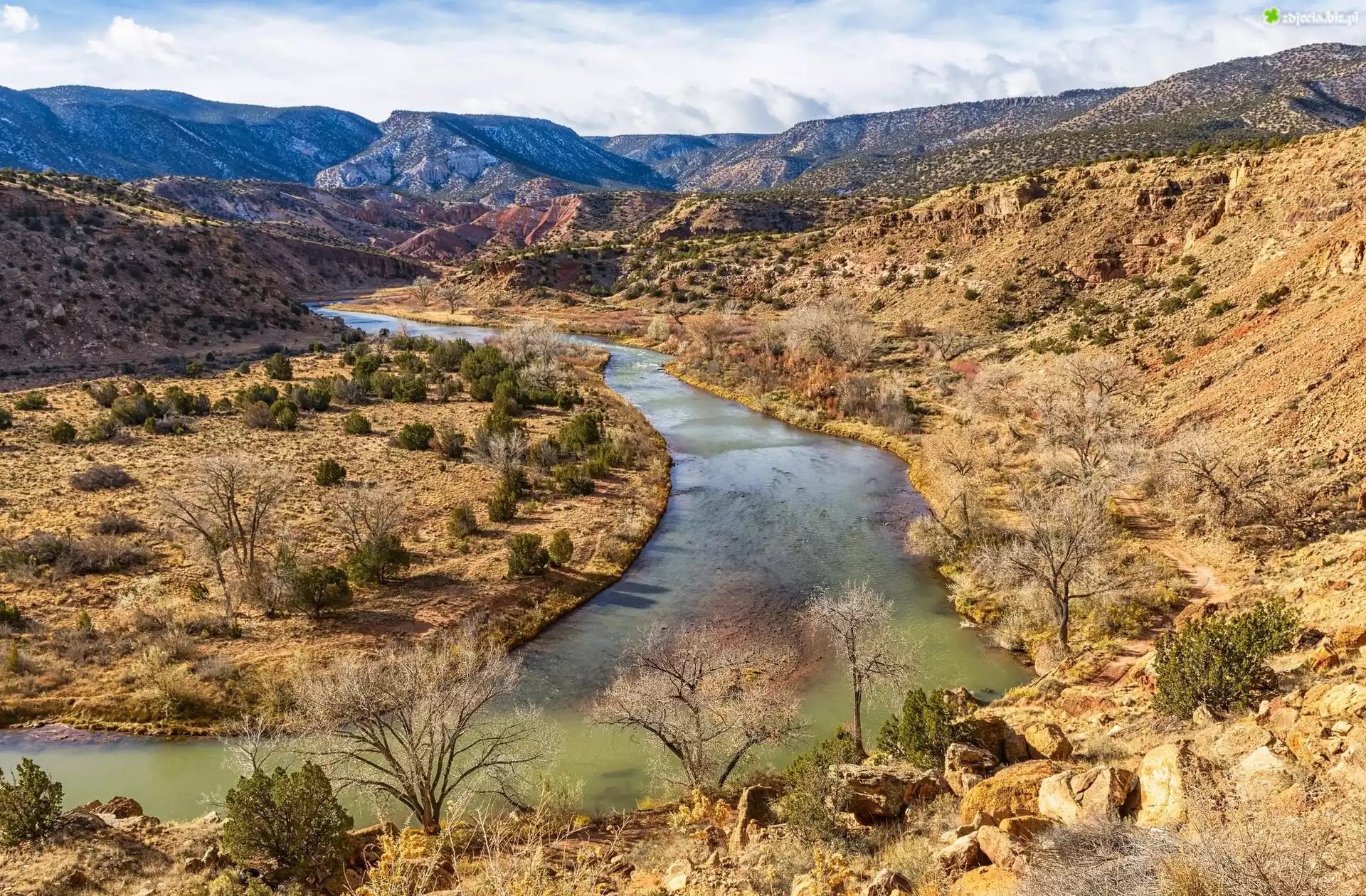 Zdjęcie, Kręta, Rzeka, Góry, Drzewa