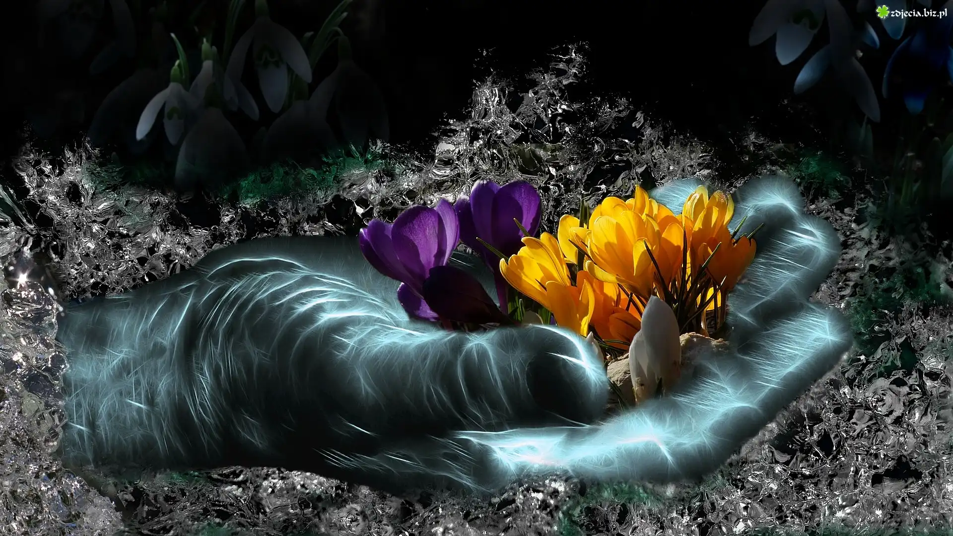 Zdjęcie Dłoń, Krokusy, Fractalius
