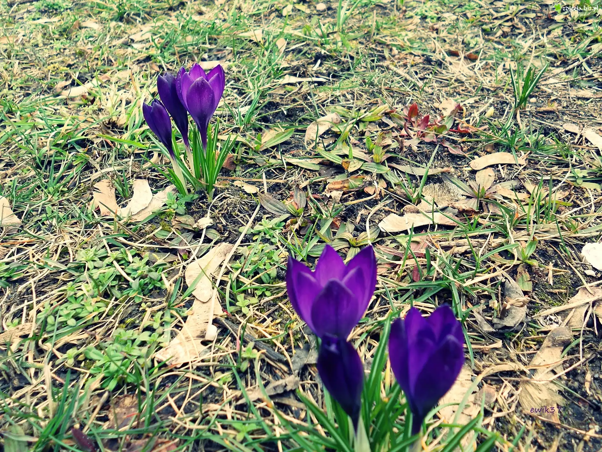 Zdjęcie Krokusy, Kolor, Fioletowy, Polana
