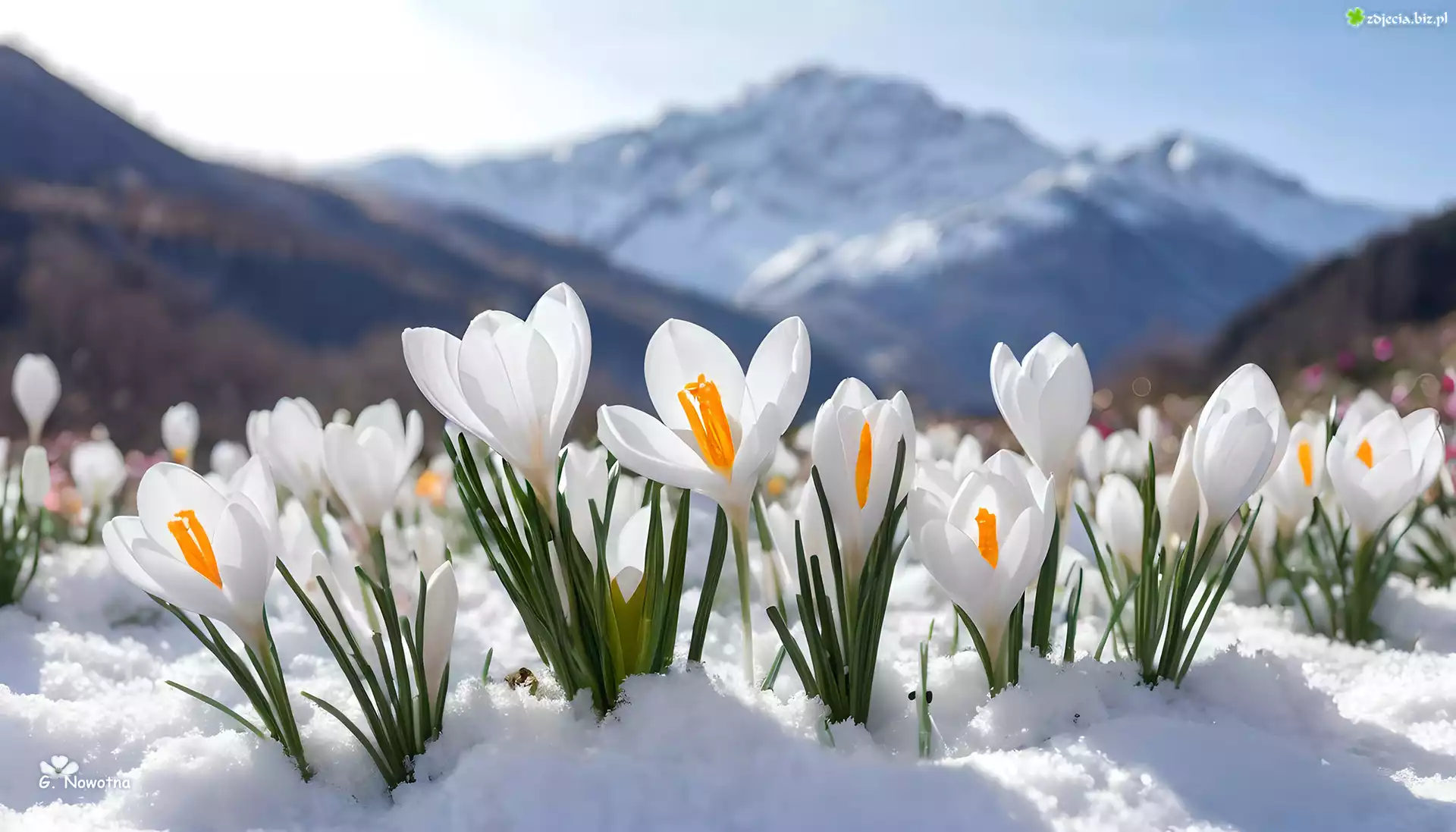 Zdjęcie Białe, Krokusy, Śnieg, Góry, Grafika