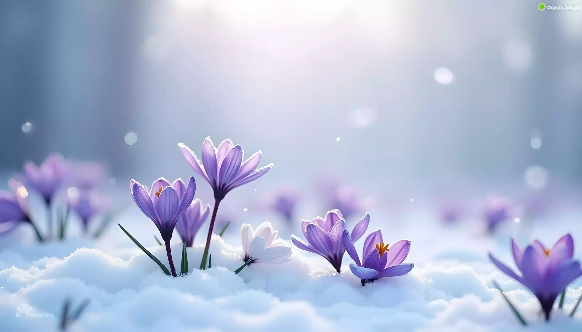 Zdjęcie Fioletowe, Krokusy, Śnieg, Zima, Grafika