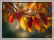Zdjęcie, Gałązka, Jesienne, Liście, Krople, Grafika, AI