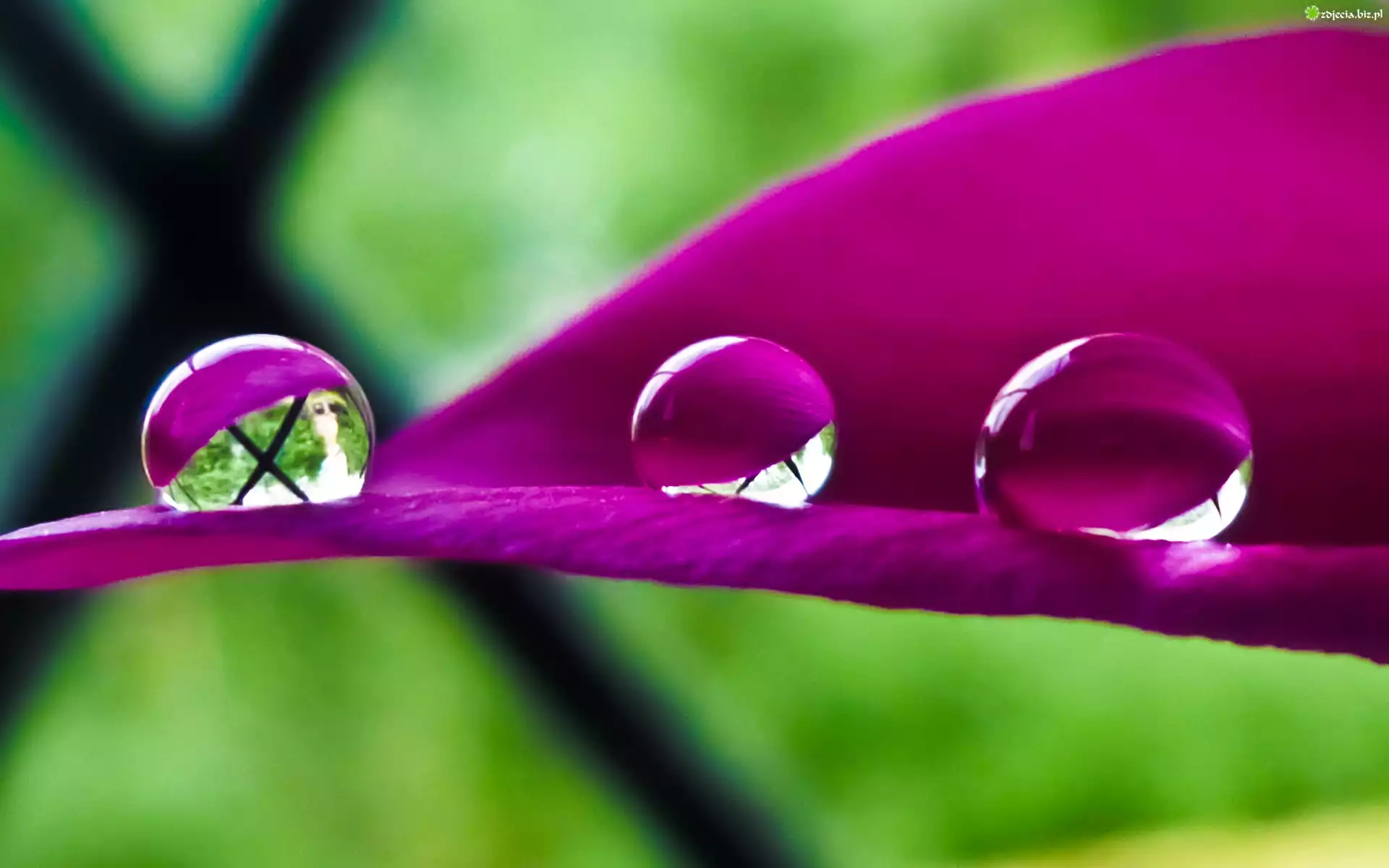 Zdjęcie Krople, Rosy, Liść, Makro
