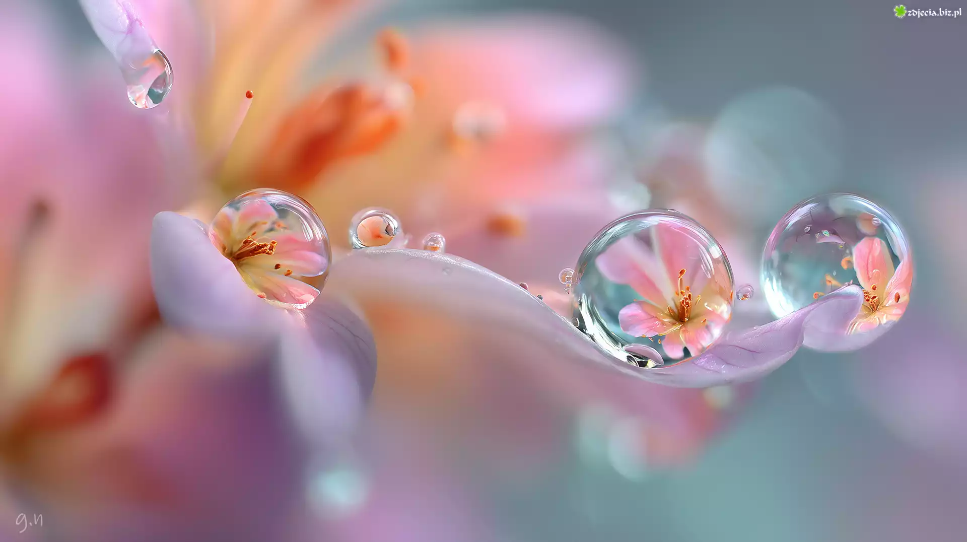 Zdjęcie, Kwiat, Krople, Odbicia, Grafika AI