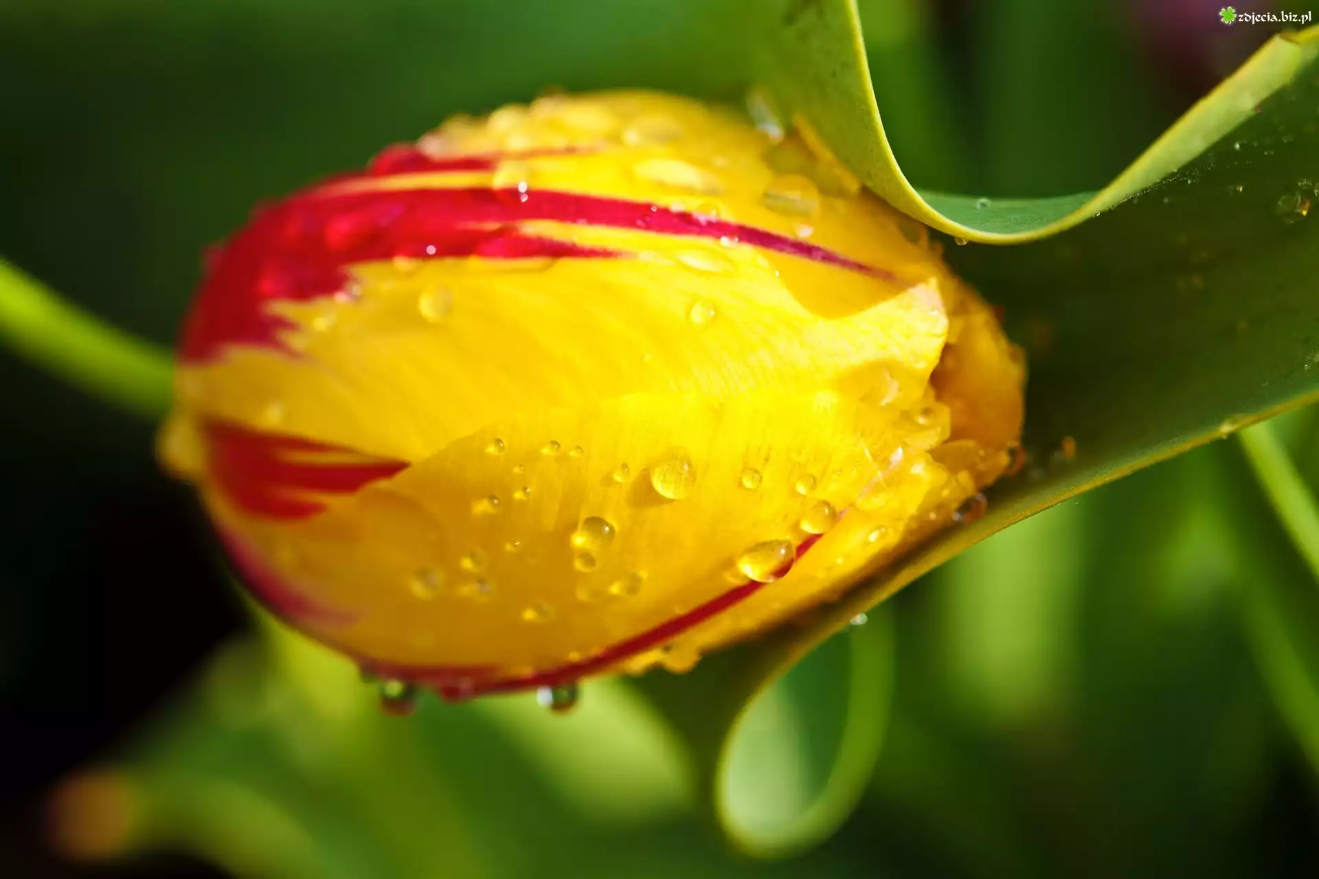Zdjęcie Żółty, Pąk, Tulipana, Krople, Wody