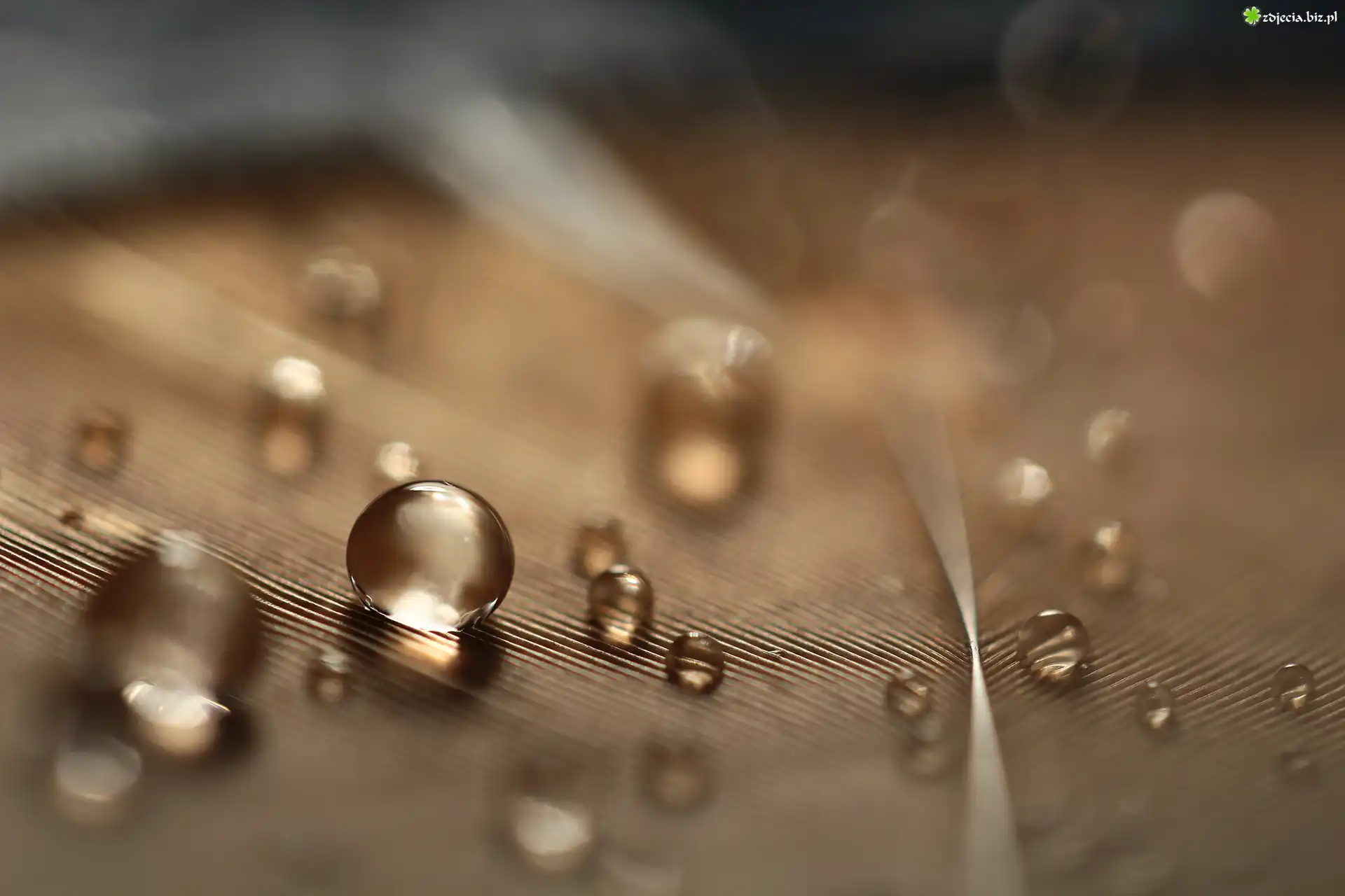 Zdjęcie Krople, Kropelki, Piórko, Makro