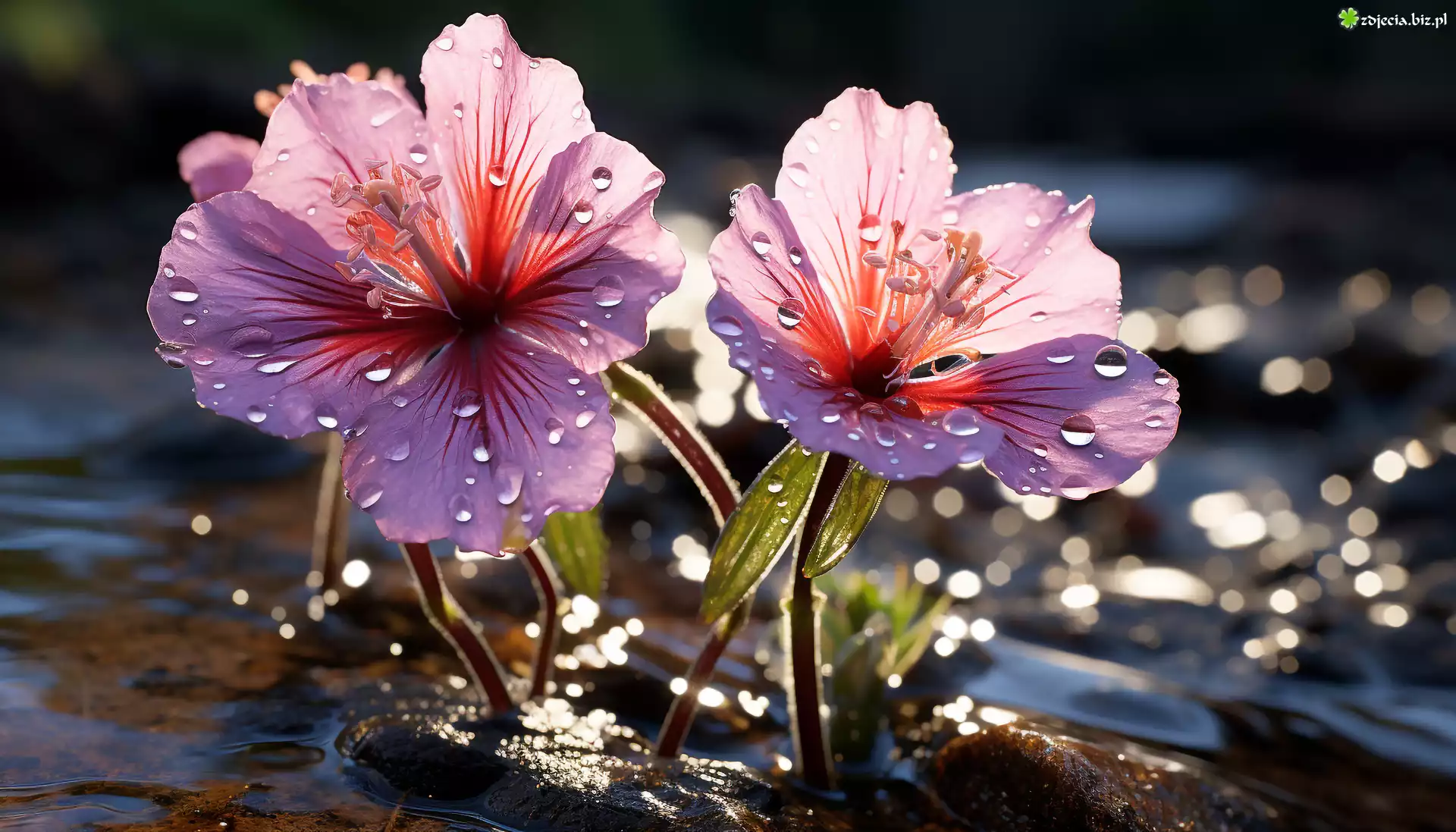 Zdjęcie Różowe, Dwa, Kwiaty, Krople