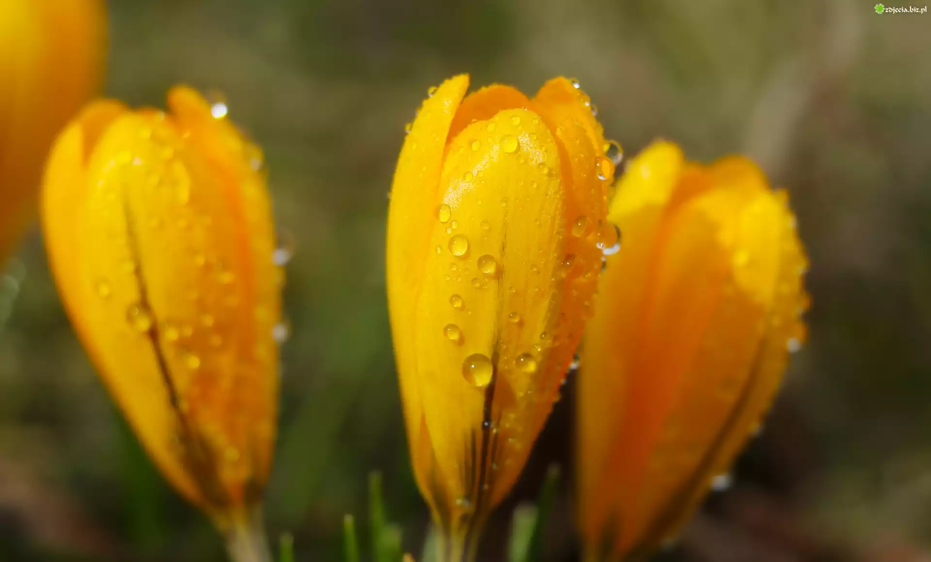 Zdjęcie Żółte, Krokusy, Pąki, Krople