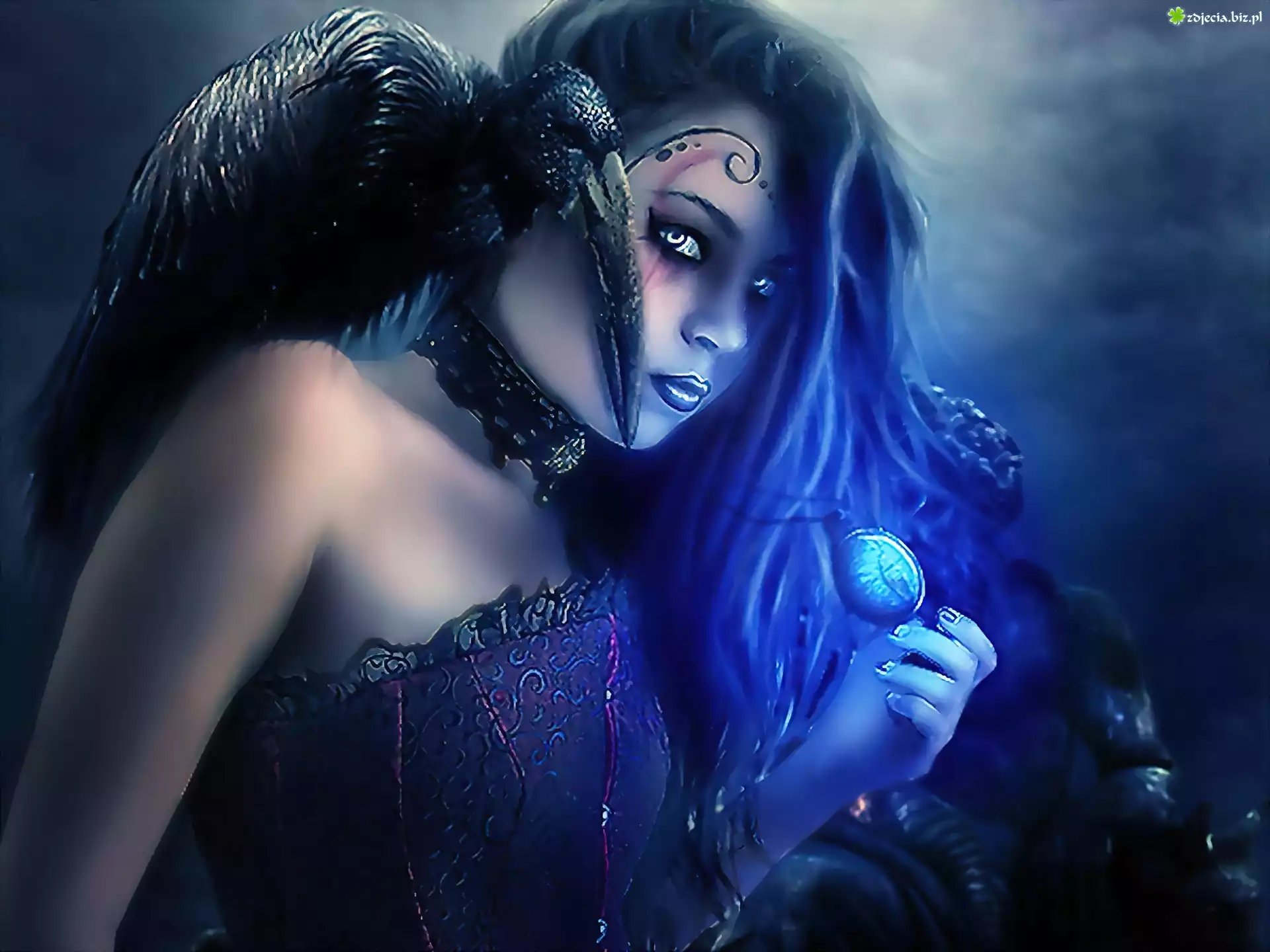 Zdjęcie Dziewczyna, Kruk, Zegarek