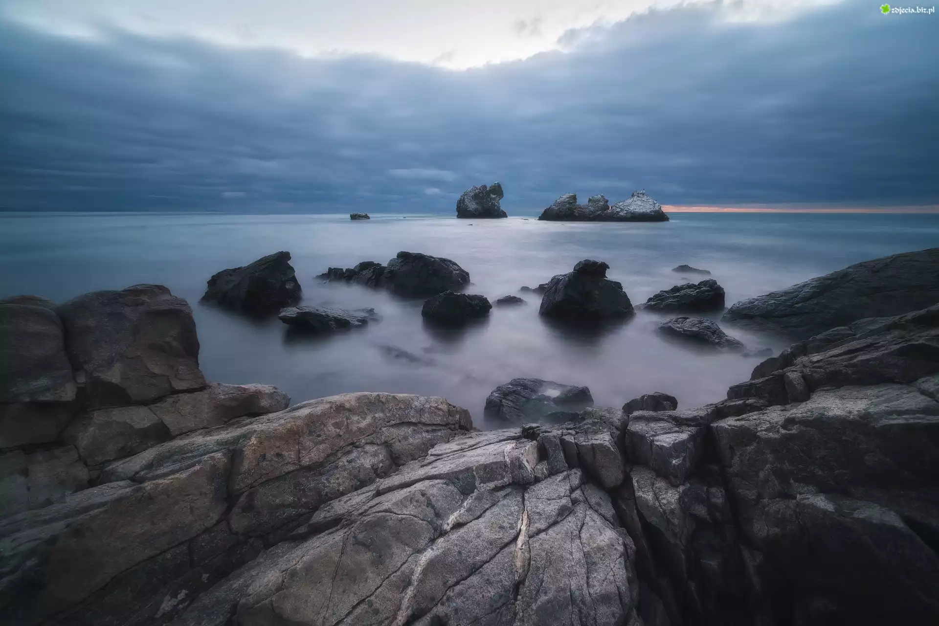 Zdjęcie, Morze Czarne, Skały, Kamienie, Wschód słońca, Wieś Utes, Krym