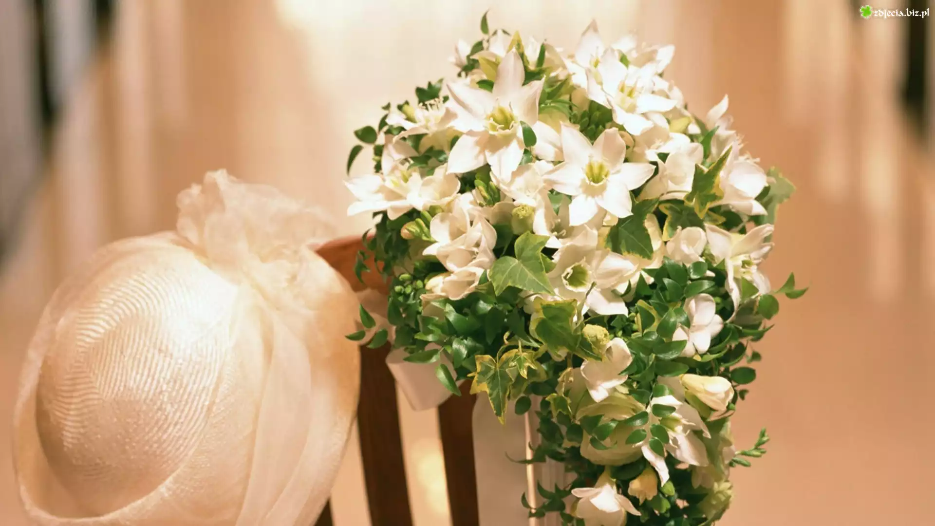 Zdjęcie Ślubny, Bukiet, Krzesło, Kapelusz
