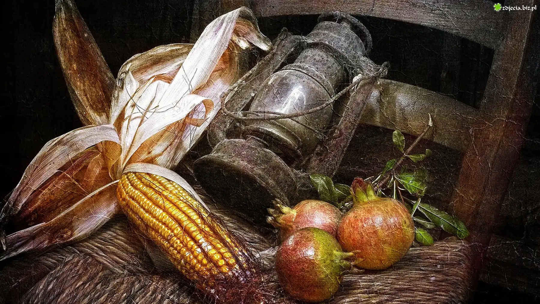Zdjęcie Krzesło, Stara, Lampa, Kukurydza, Granaty