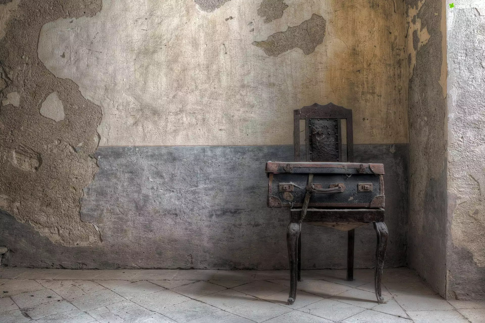 Zdjęcie Zaniedbane, Wnętrze, Krzesło, Walizka