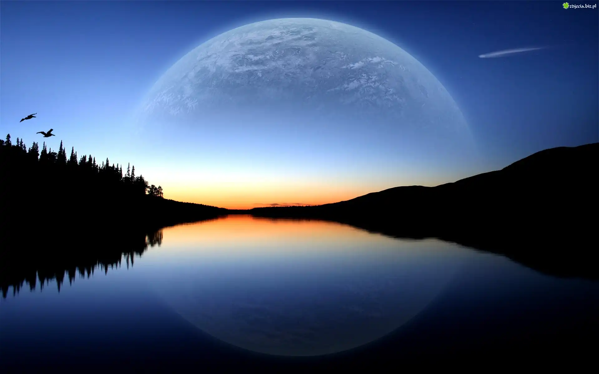 Zdjęcie, Niebo, Księżyc, Jezioro