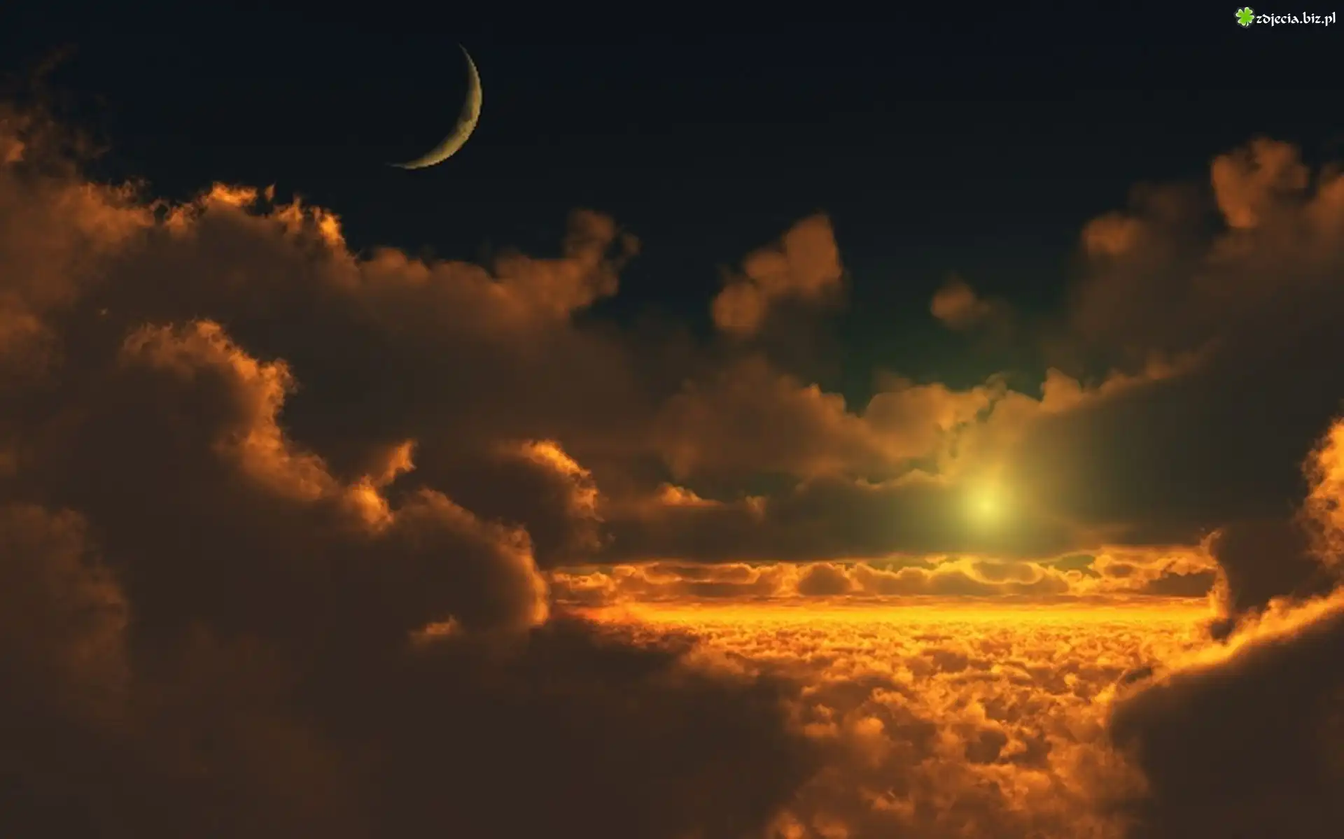 Zdjęcie Księżyc, Chmury, Zachód, Słońca