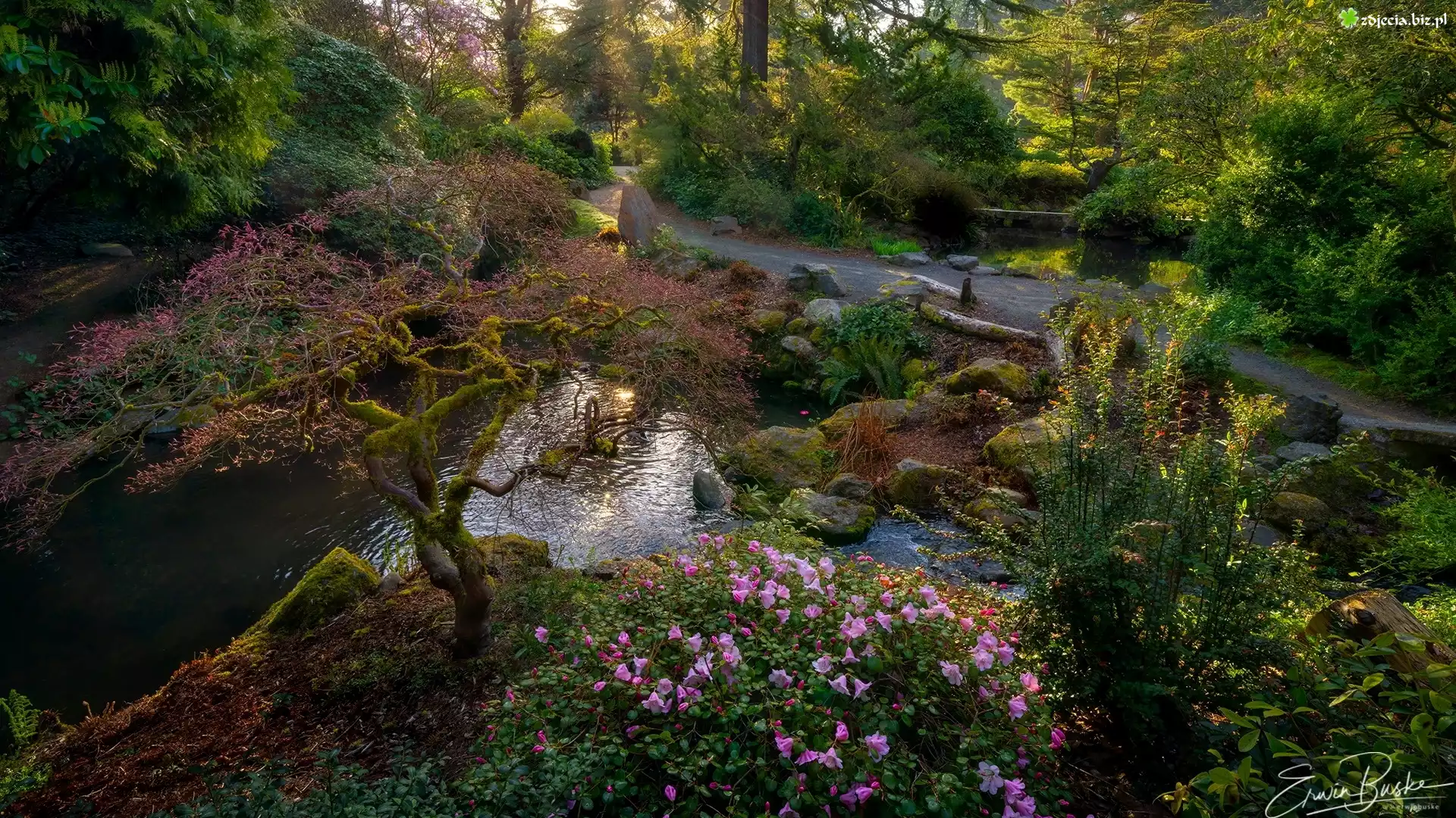 Zdjęcie Ogród, Park, Ścieżka, Wiosna, Strumyk, Kubota Garden, Seattle, Stan Waszyngton, Stany Zjednoczone |