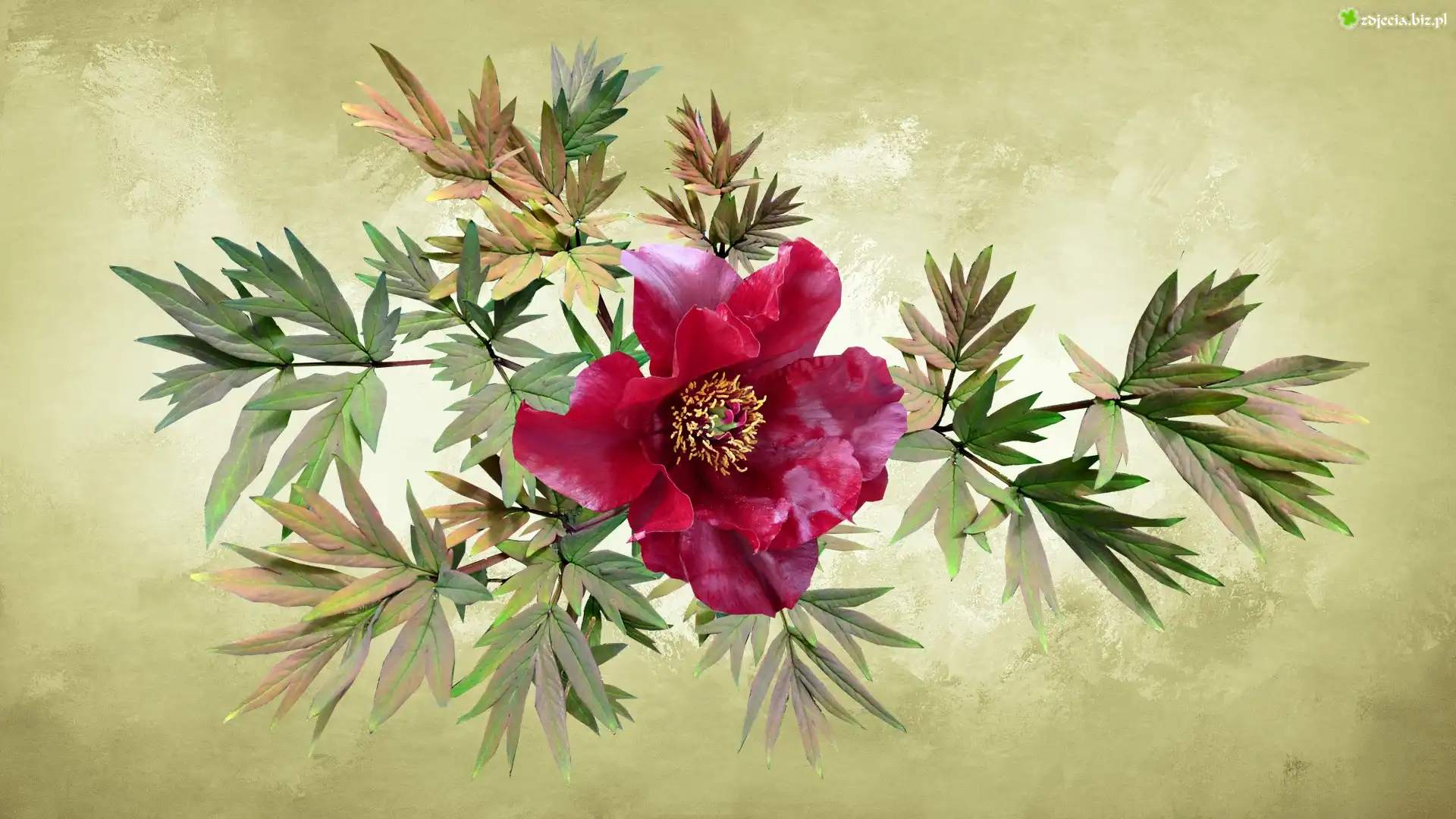 Zdjęcie Kwiat, Piwonia, Liście, Grafika 2D