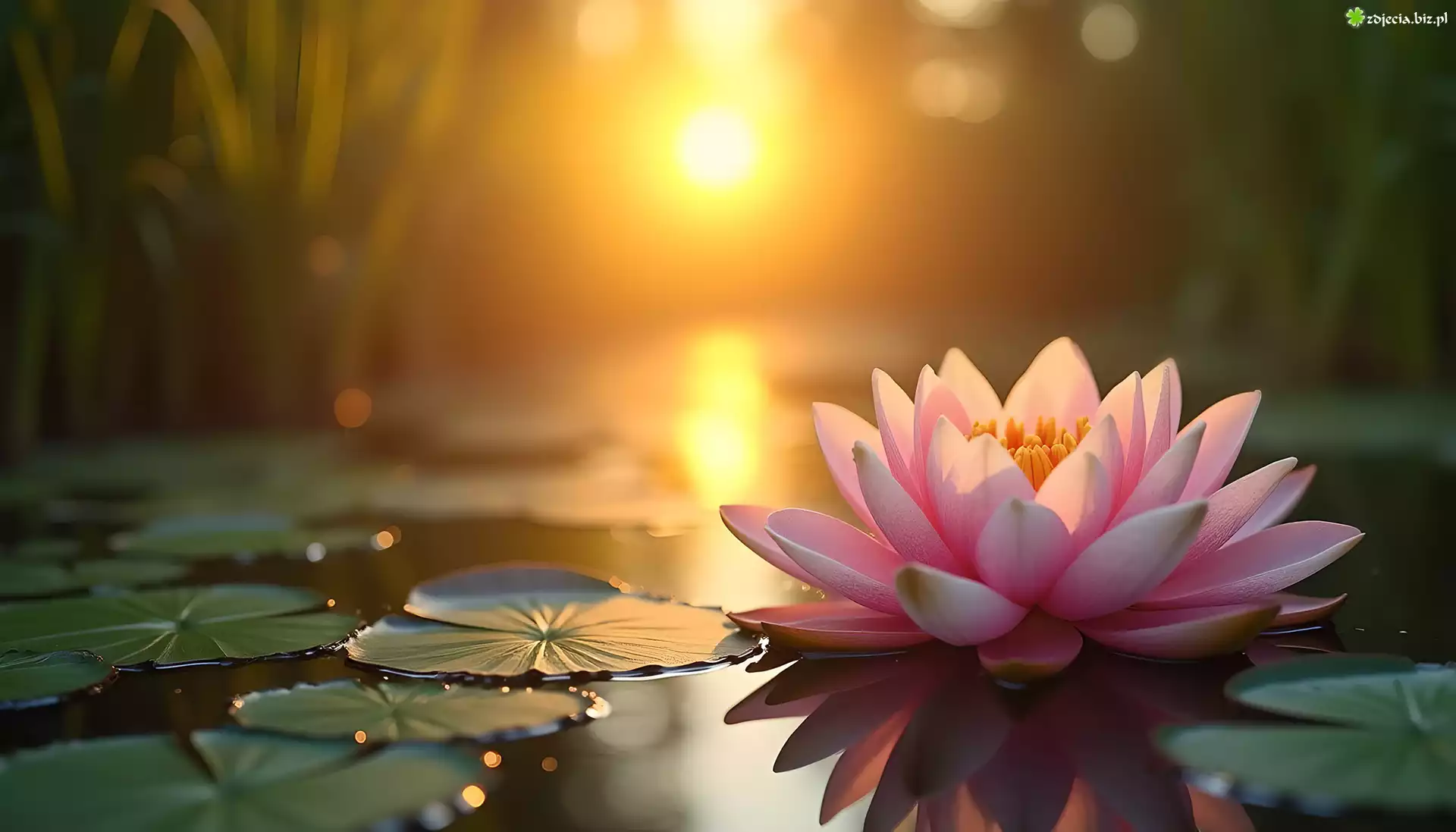 Zdjęcie Lilia wodna, Różowy, Kwiat, Liście, Grafika