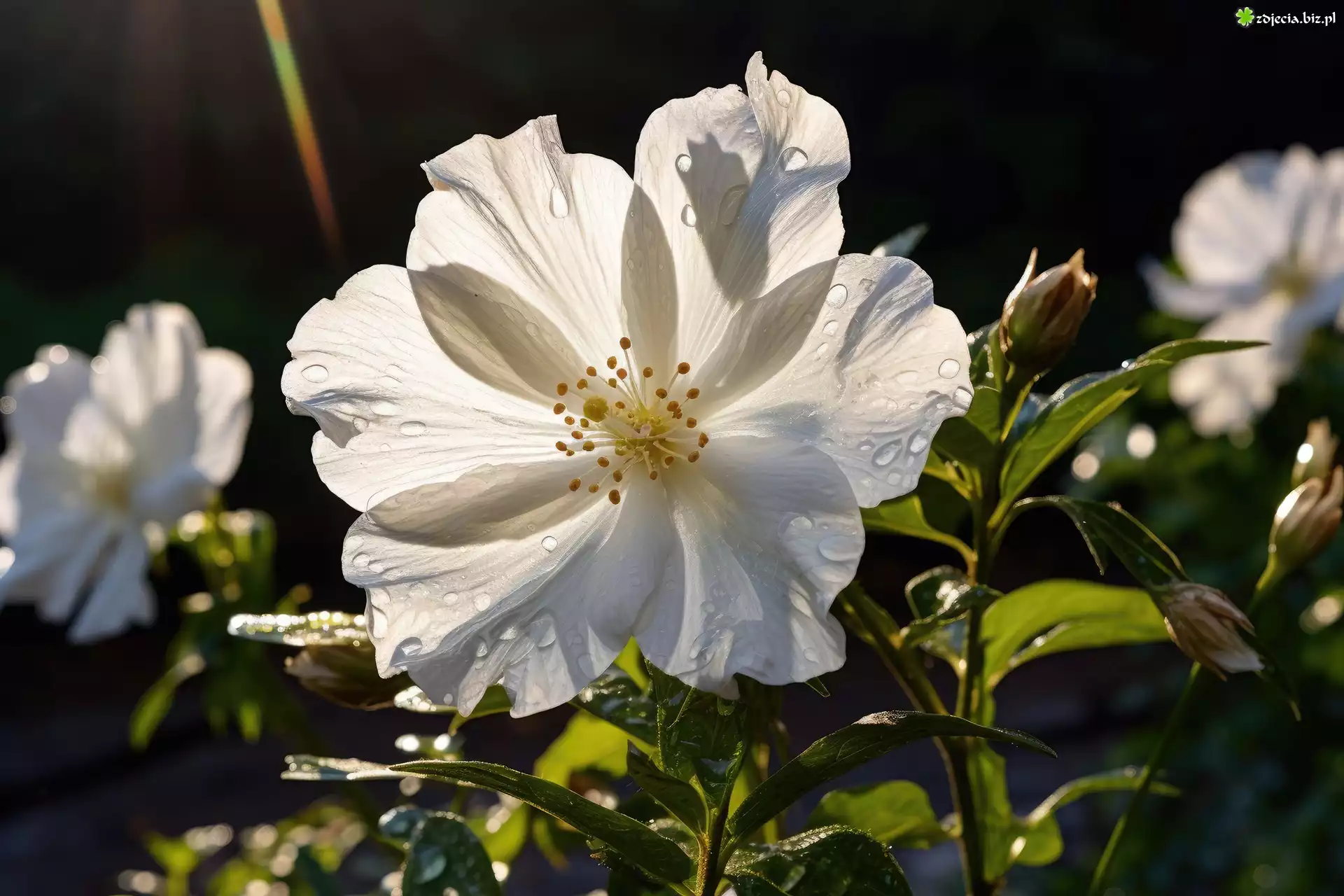 Zdjęcie Biały, Kwiat, Krople, Światło, Grafika