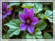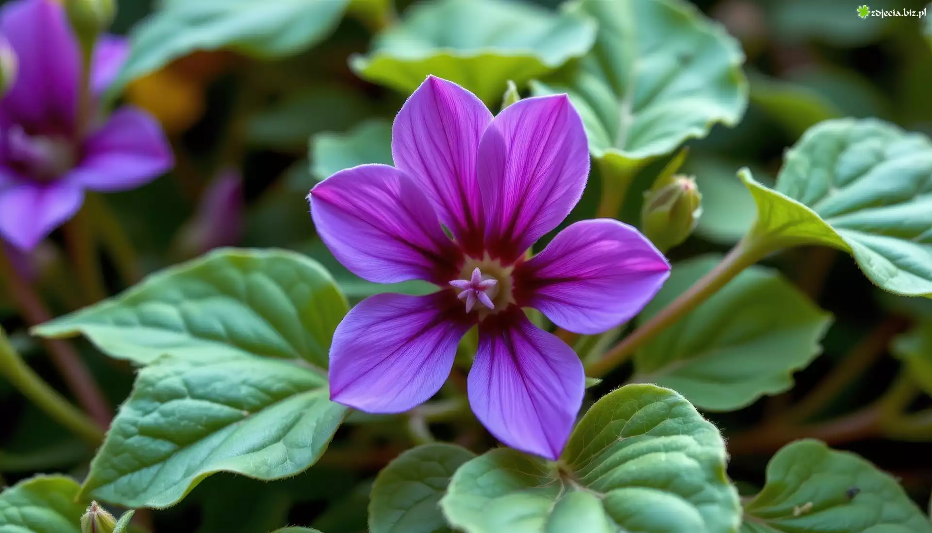 Zdjęcie Fioletowy, Kwiat, Liście, Grafika AI