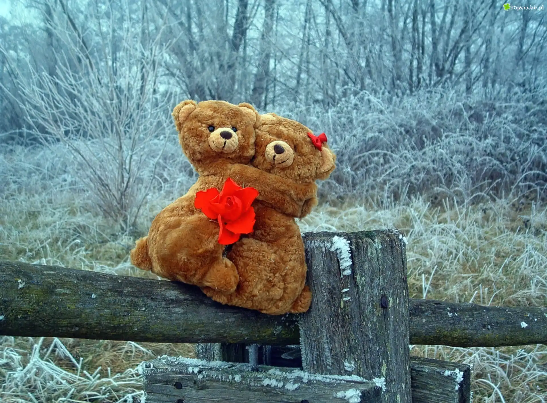 Zdjęcie Misie, Kwiat, Ogrodzenie