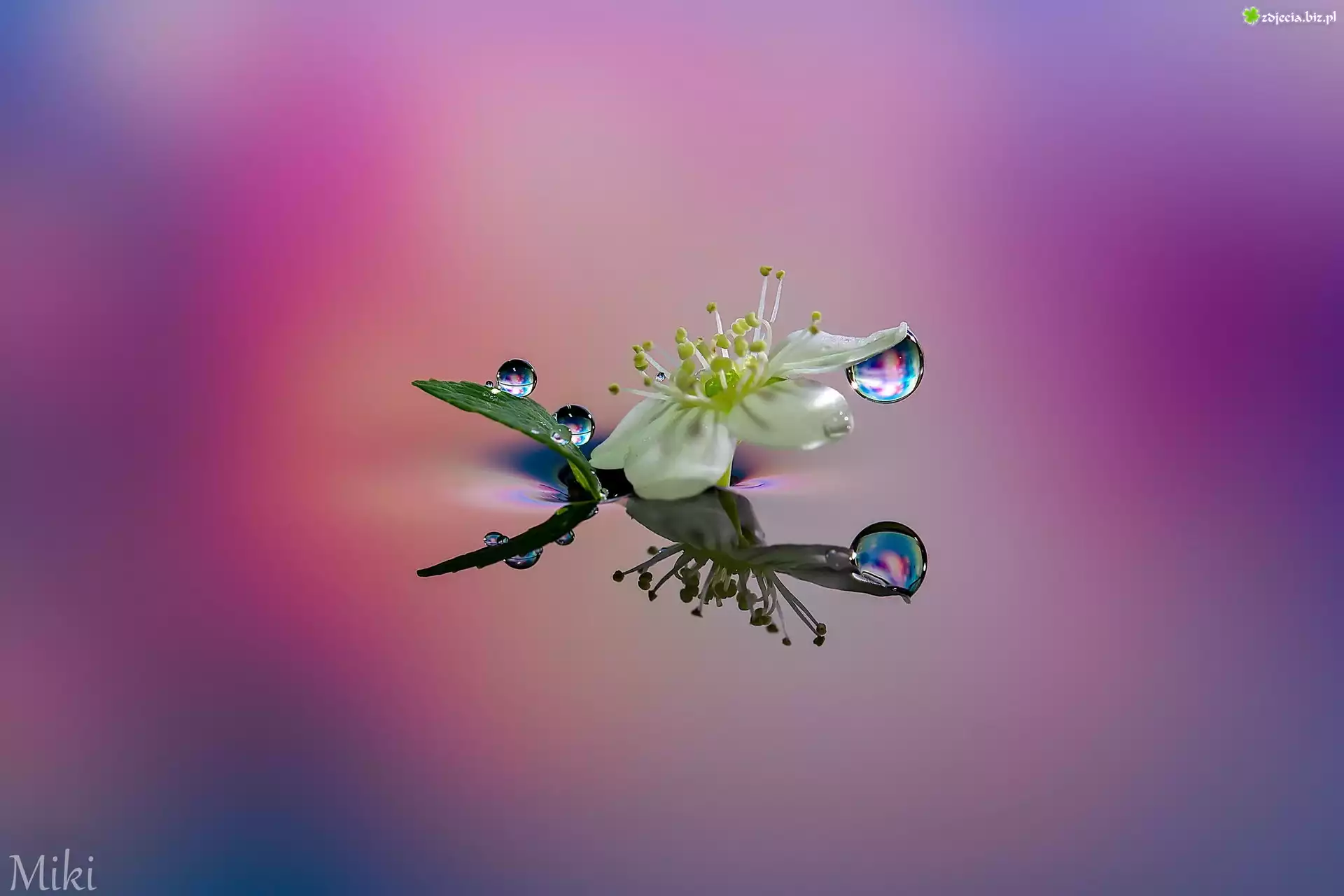 Zdjęcie Kwiat, Krople, Odbicie, Makro