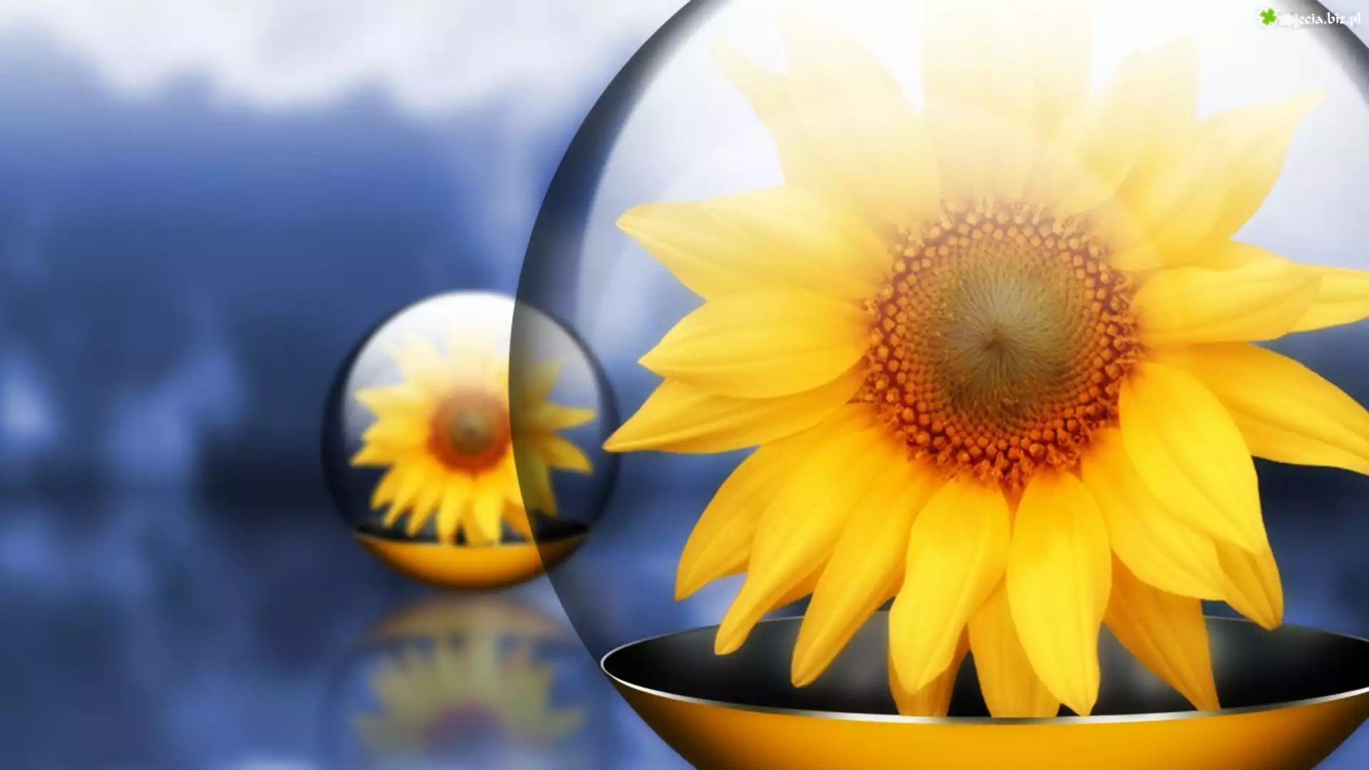 Zdjęcie Kwiat, Słonecznika, Talerzyk, Odbicie