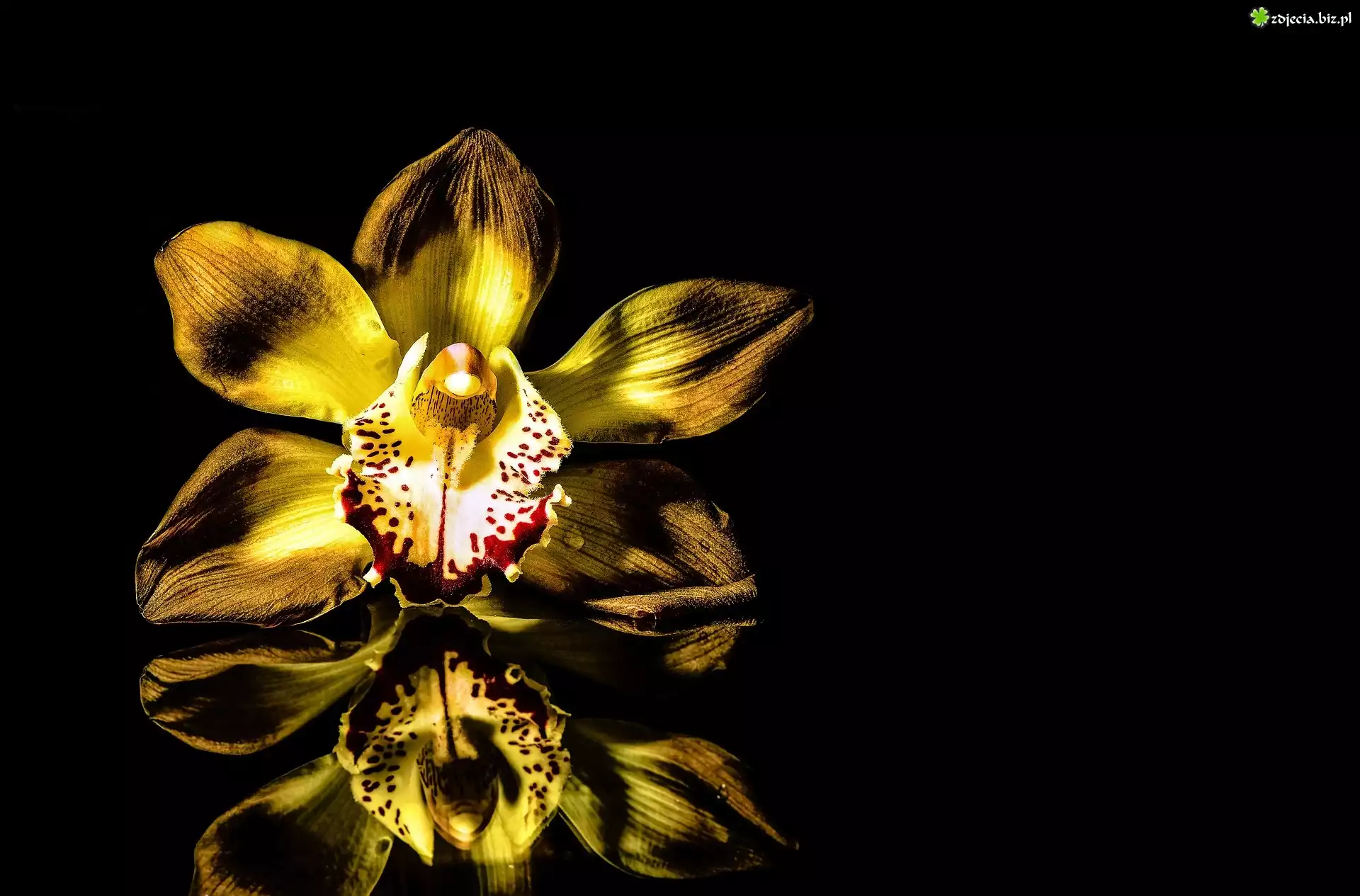 Zdjęcie Kwiat, Orchidea, Czarne Tło, Odbicie