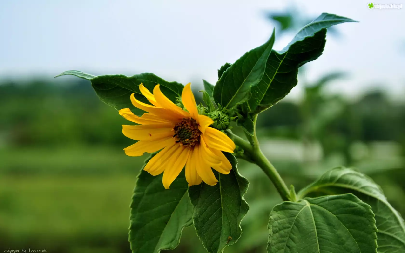 Zdjęcie Kwiat, Żółty, Słonecznik, Zielone, Liście