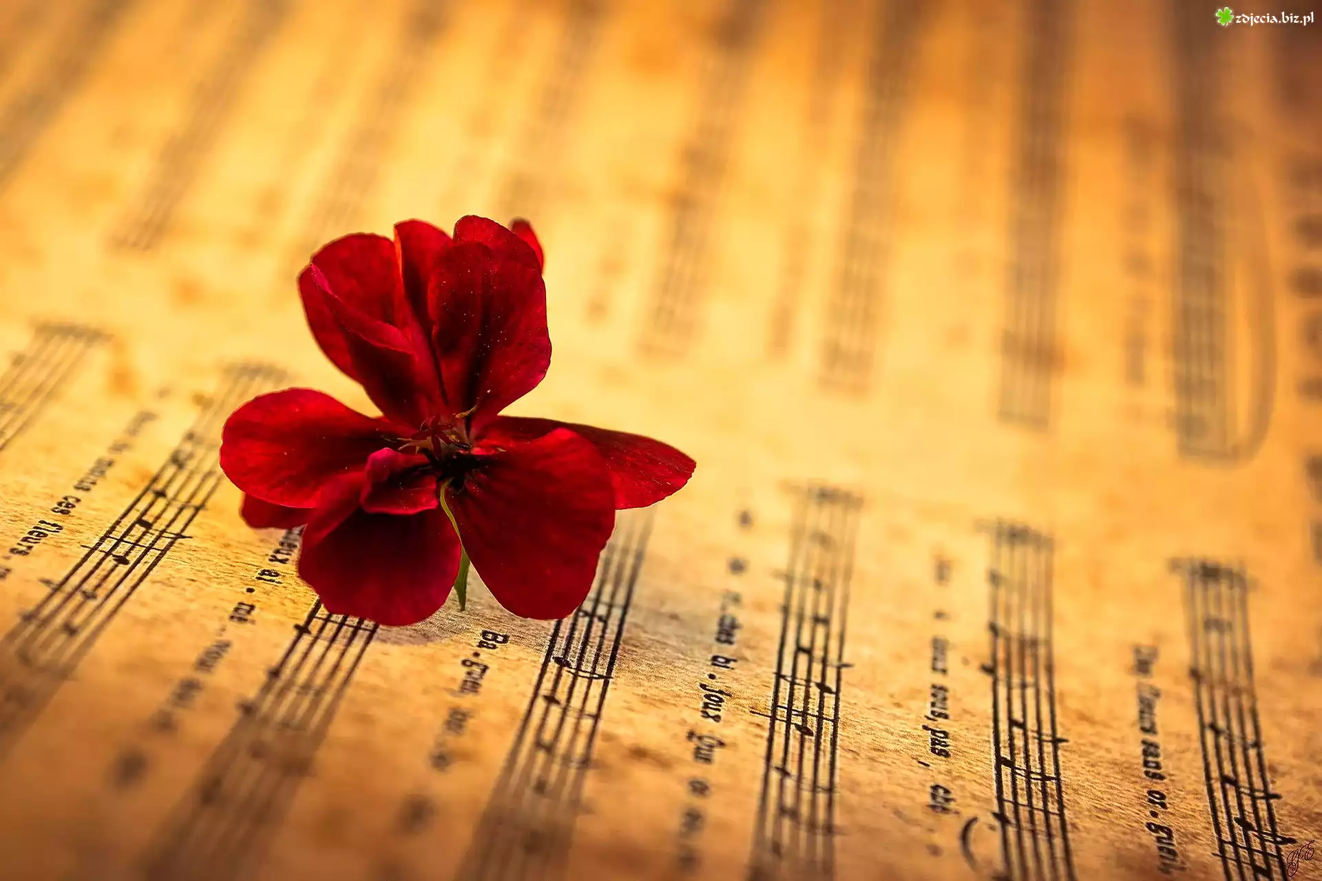 Zdjęcie, Nuty, Kwiatek, Czerwony