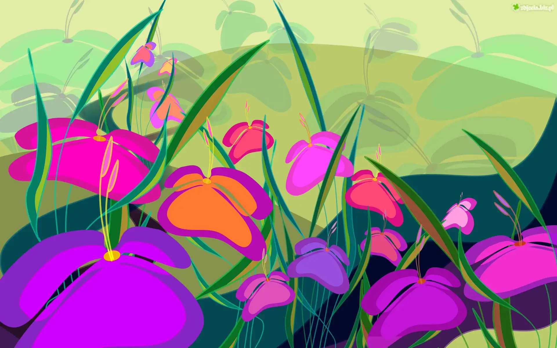 Zdjęcie, Kwiatki, Różowe, Fioletowe, Pomarańczowe, Tekstura