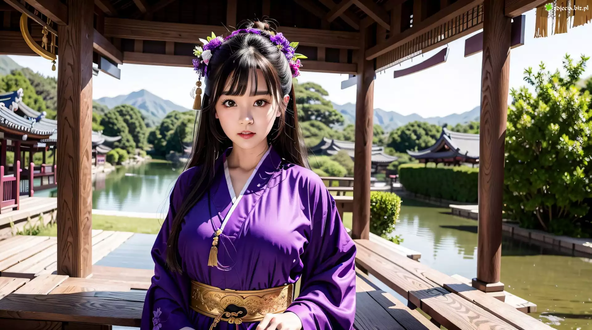 Zdjęcie Kobieta, Azjatka, Kimono, Kwiaty, Włosy, 2D