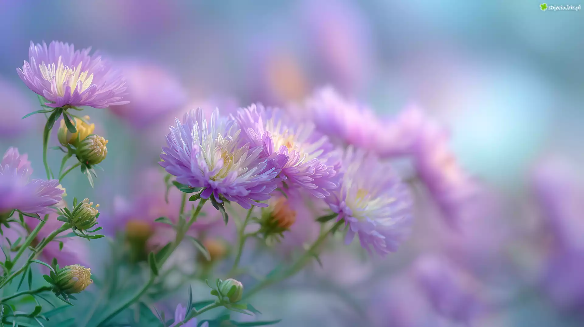 Zdjęcie, Różowo-białe, Astry, Kwiaty, Grafika AI
