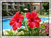 Zdjęcie Hibiskus, Dwa, Czerwone, Kwiaty, Grafika AI