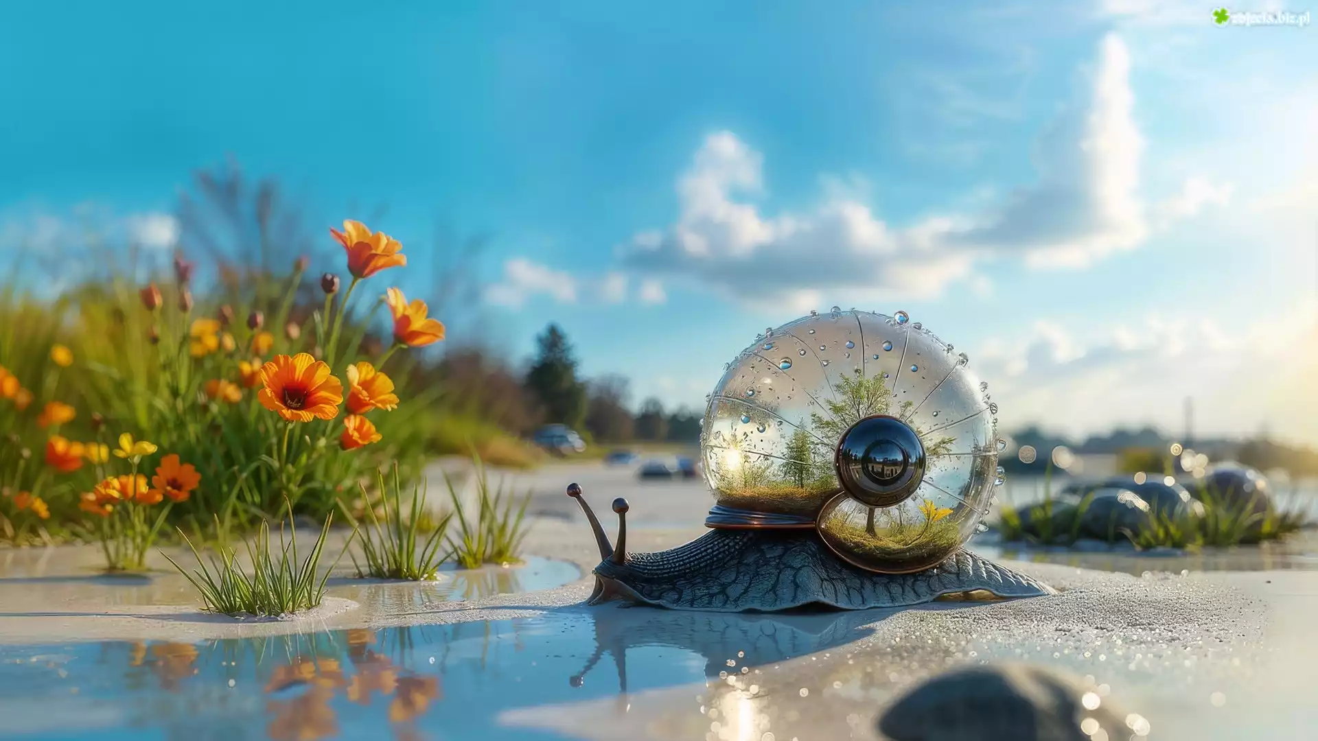 Zdjęcie Ślimak, Przezroczysta, Muszla, Kwiaty, Grafika AI