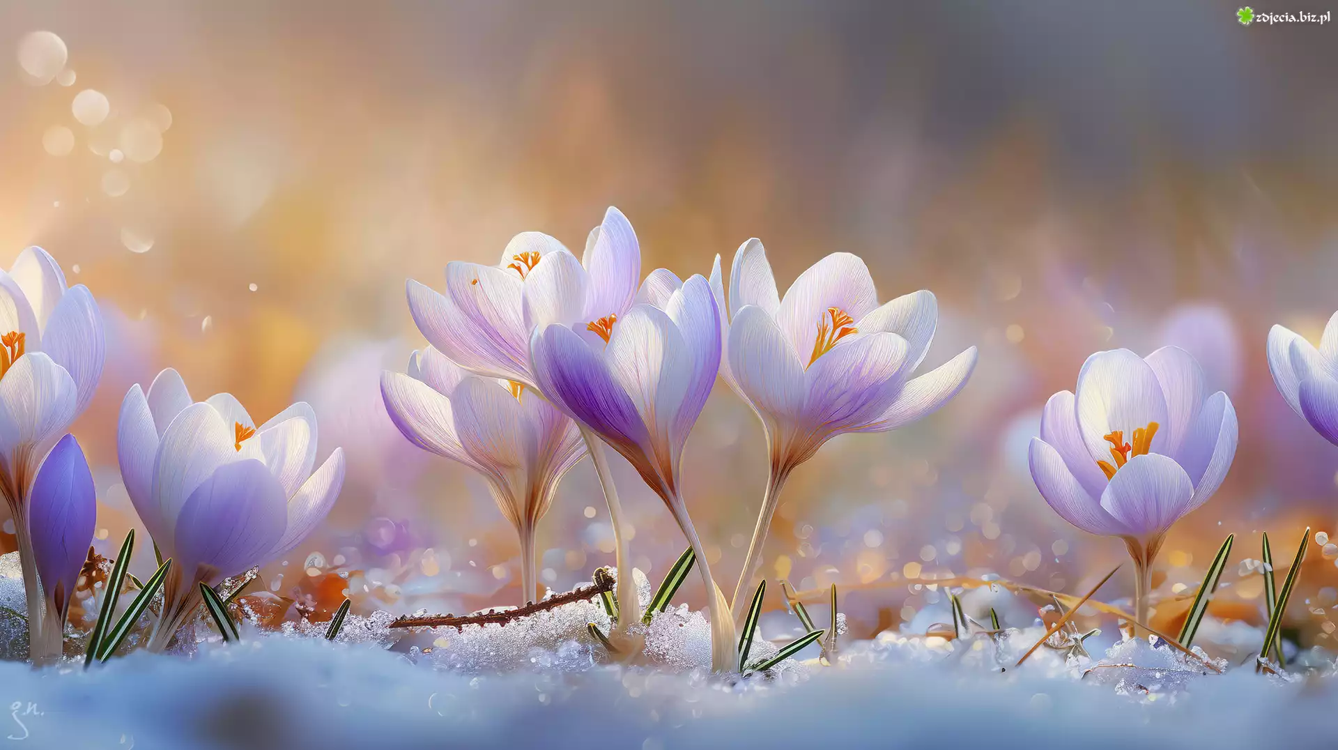 Zdjęcie Różowe, Krokusy, Śnieg, Kwiaty, Grafika AI